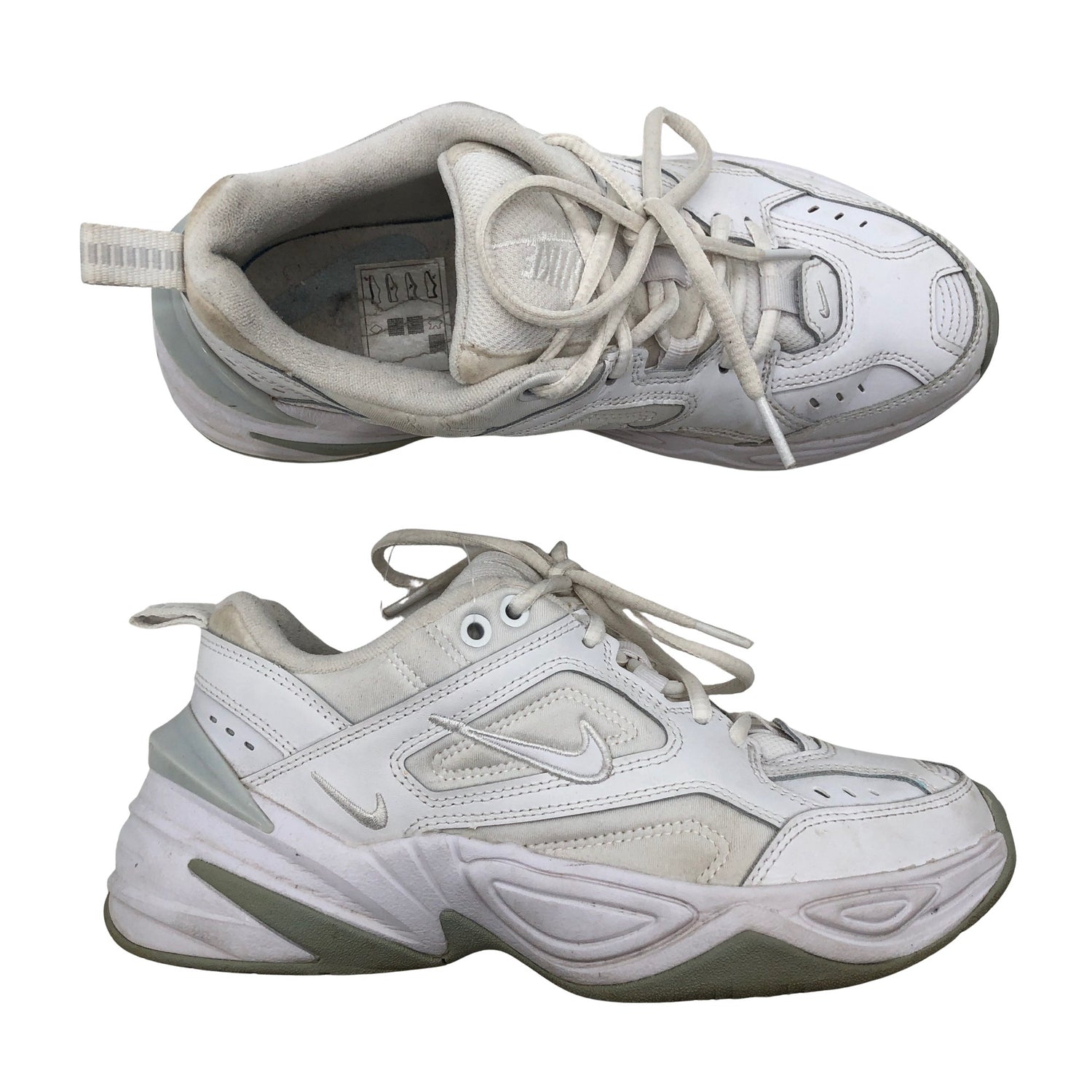 Nike Lenkkarit, koko 38. Malli: M2K Tekno. Solmittava malli. Tuotteen sisäpuolella on hieman nukkaa. Tuotteen pinnassa on muutama haalea tahra. Lähtee todennäköisesti pesussa. Yleisilme on siisti.