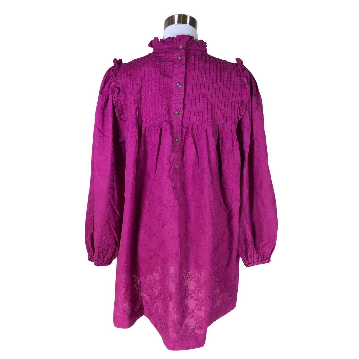 Materiaali ei jousta. Takana napit. Tuotteen pinnassa on aavistus pesu-/käyttökulumaa. Tuote on muilta osin hyvässä kunnossa.