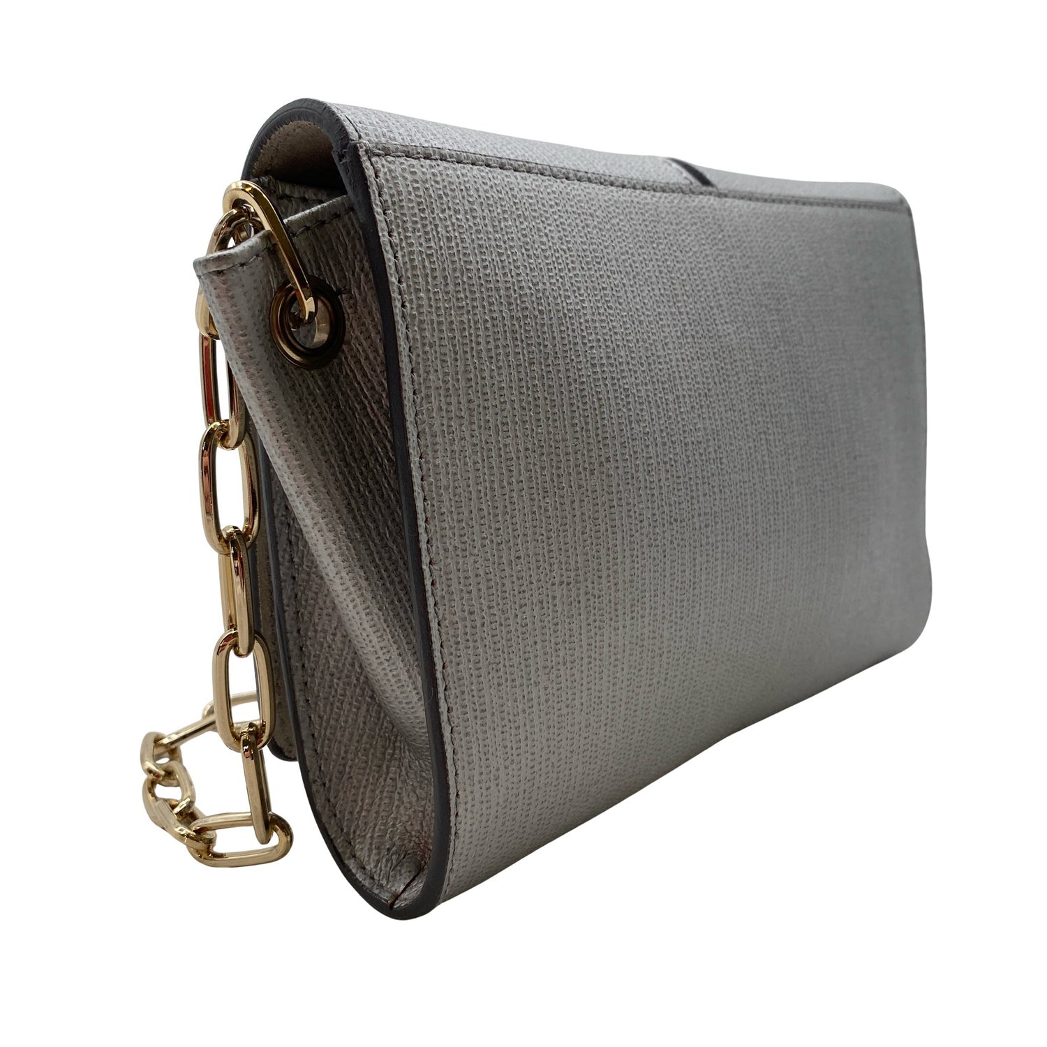 Väri: hopea. Materiaalitieto puuttuu. Todennäköisesti nahkaa. Dustbag mukana.
