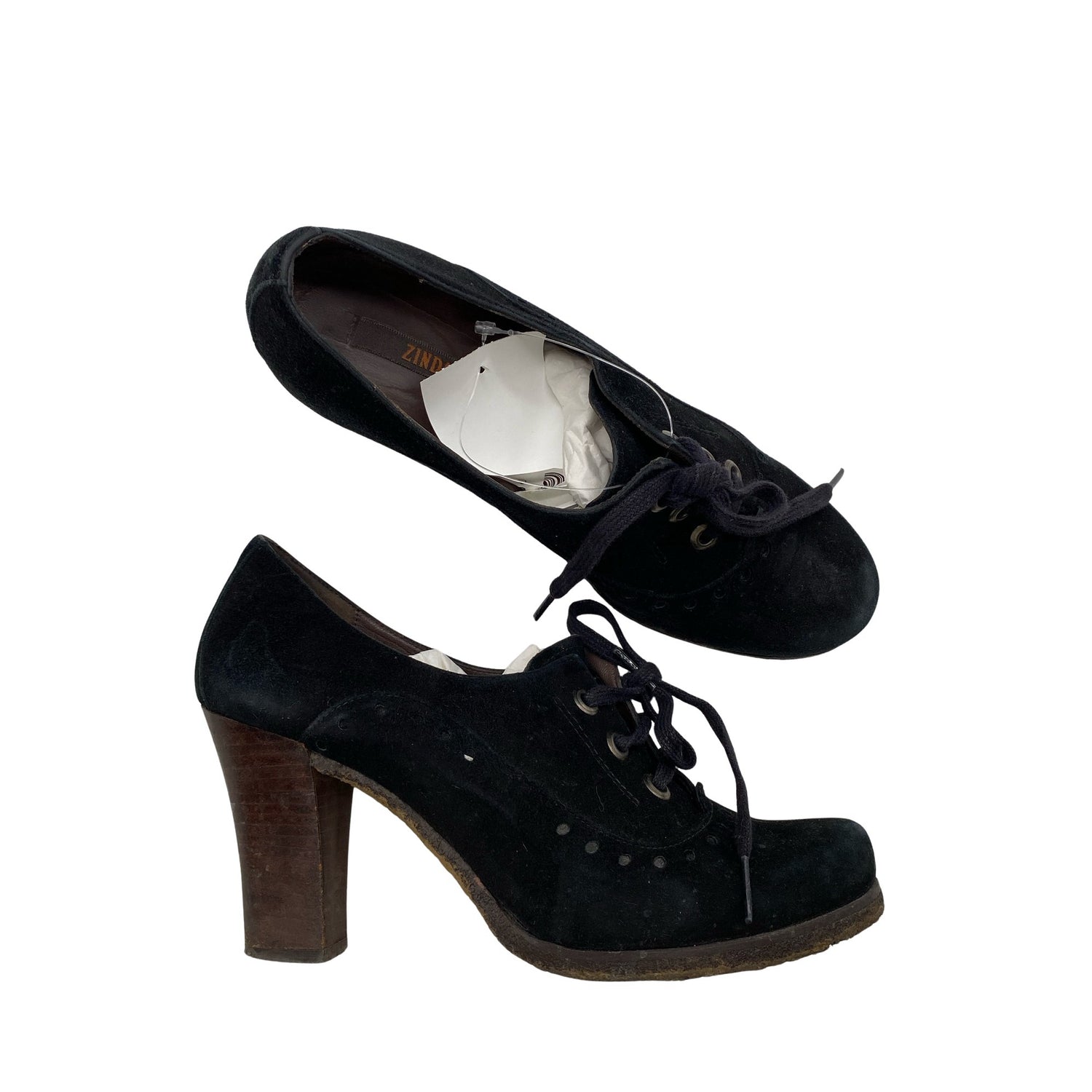 Solmittava malli. Korkeat korot (yli 8 cm). Tuotteen pinnassa on hieman pesu-/käyttökulumaa. Yleisilme on siisti.