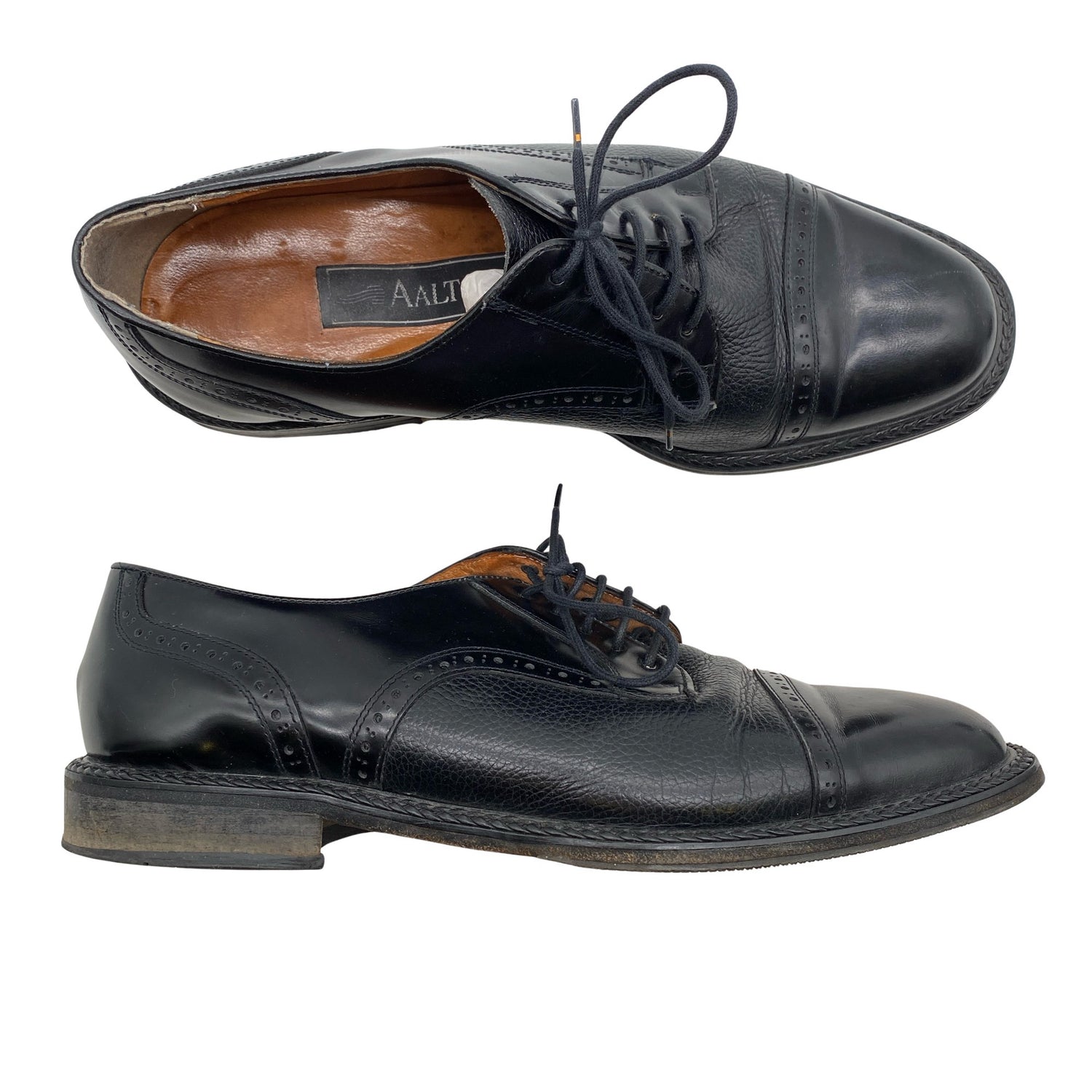 Aaltonen Kävelykengät, koko 44. Nahkaa. Tuotteen pinnassa on hieman pesu-/käyttökulumaa. Yleisilme on siisti.