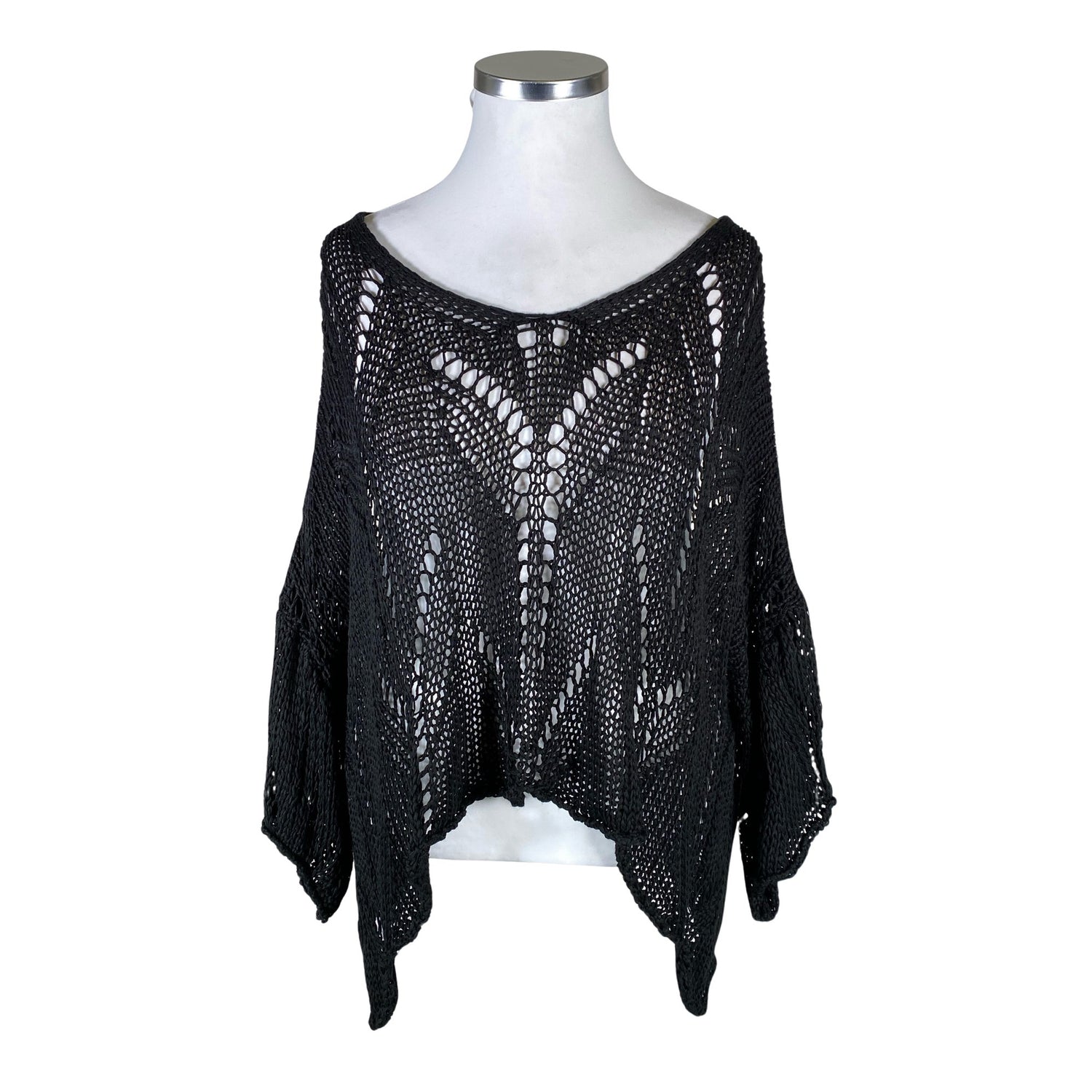 Oversized. Harvaa neulosta. Tuotteen pinnassa on hieman pesu-/käyttökulumaa. Yleisilme on siisti.