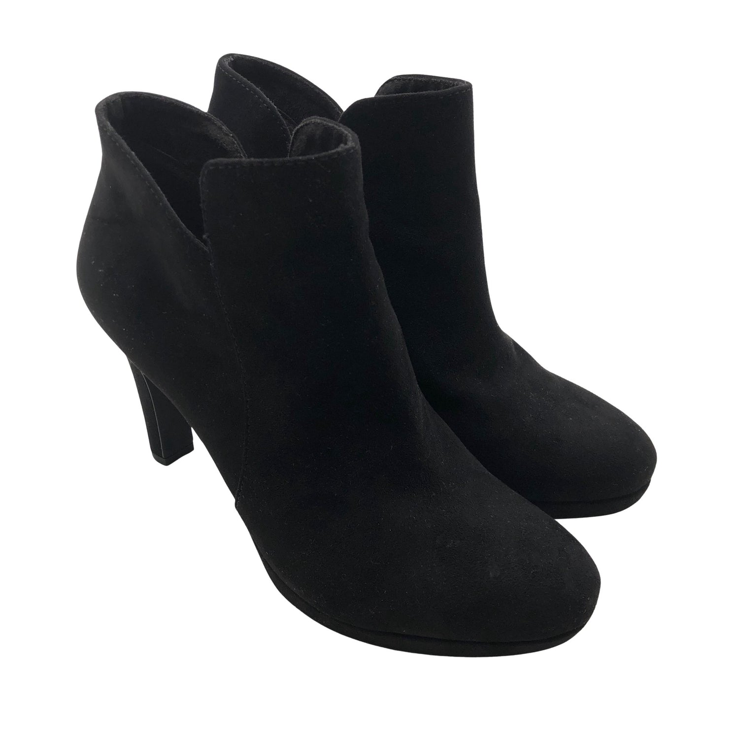 Mokkamainen pinta. Tuotteessa on vetoketju. Korkeat korot (yli 8 cm). Tuotteen pinnassa on aavistus pesu-/käyttökulumaa. Yleisilme on siisti.