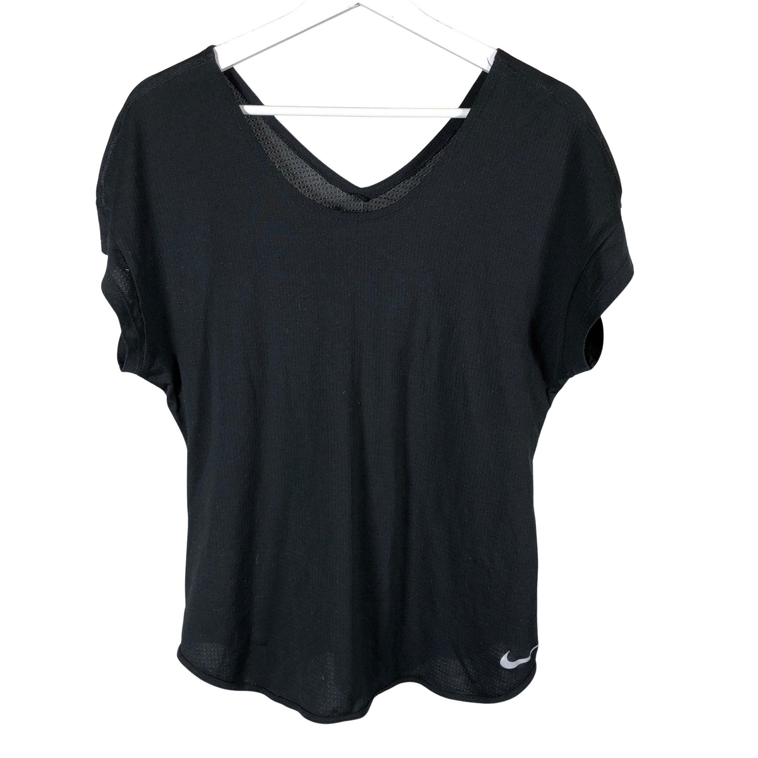 Dri-fit -merkintä. Tekninen materiaali. Materiaali joustaa. Tuotteen pinnassa on aavistus pesu-/käyttökulumaa. Yleisilme on siisti.