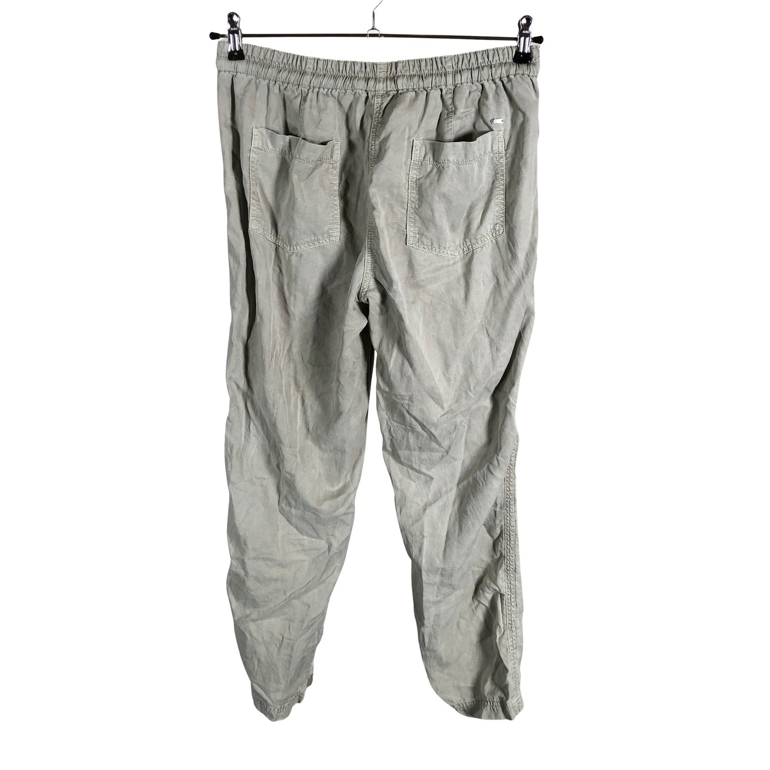 Puuvillasekoitetta. Materiaali ei jousta. Joustava vyötärö. Tuotteen pinnassa on aavistus pesu-/käyttökulumaa. Tuotteen pinnassa on aavistus tummentumaa. Yleisilme on siisti.