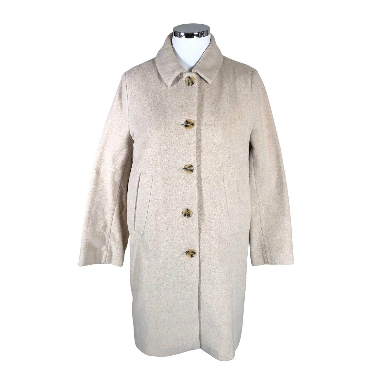 Villasekoitetta. Vaatteessa on taskut. Paksua materiaalia. Tuotteessa on ohut vuori. Tuotteen pinnassa on aavistus pesu-/käyttökulumaa. Yleisilme on siisti.