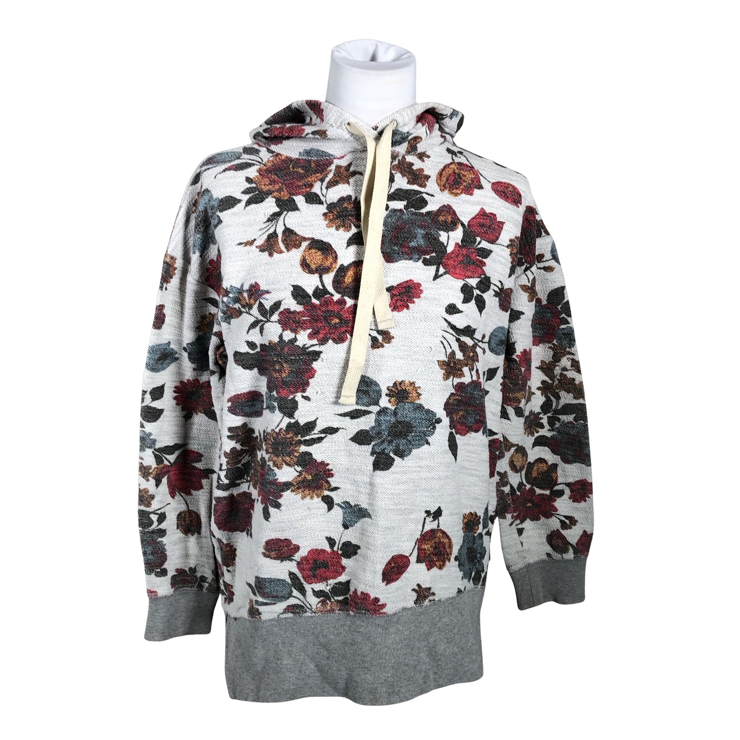 Collegea. Pitkä malli. Väljä malli. Oversized. Sivusaumoissa on halkiot. Tuotteen pinnassa on muutama langankiristymä/langannousu. Tuotteen pinnassa on hieman pesu-/käyttökulumaa. Yleisilme on siisti.