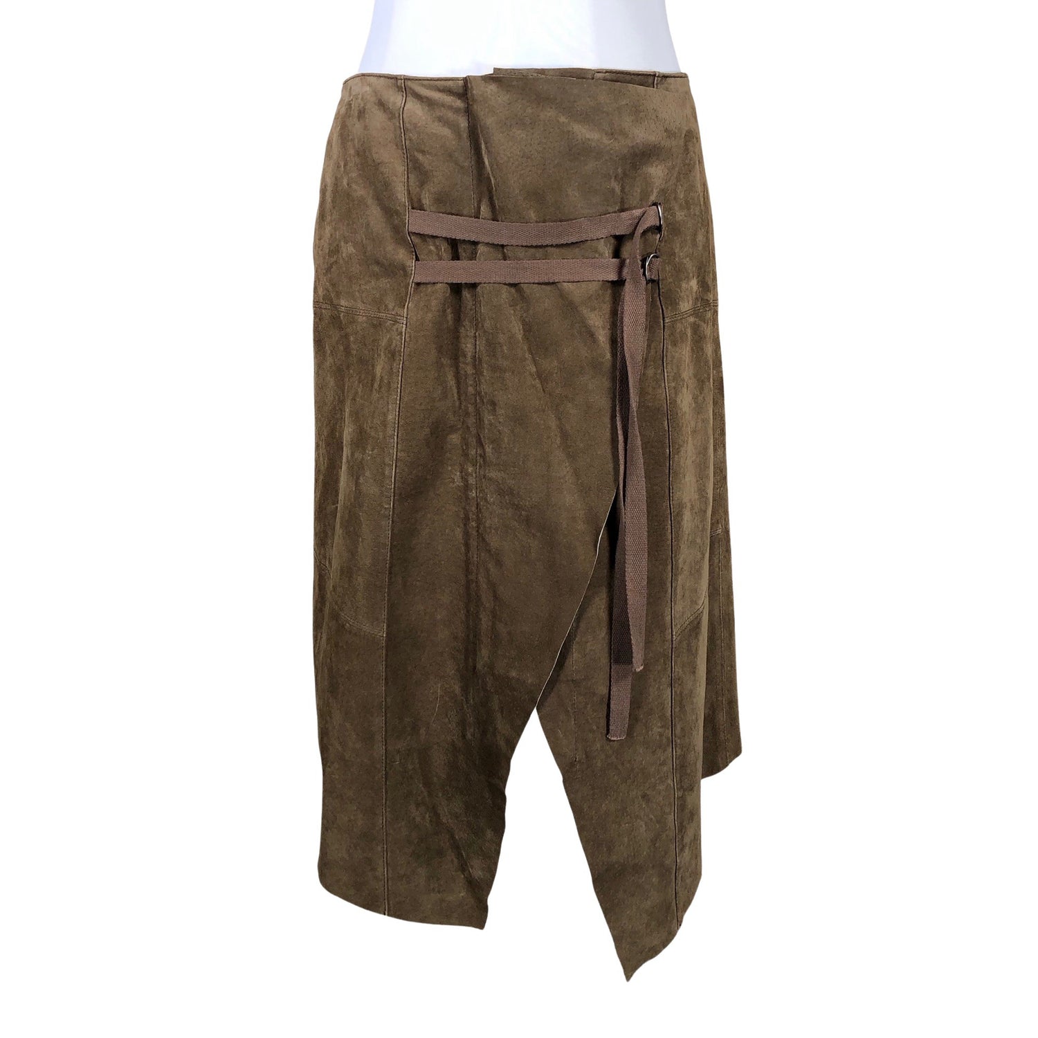 Epäsymmetrinen leikkaus. Tuotteessa on ohut vuori. Säädettävä koko. Tuotteessa on vetoketju. Materiaalitieto puuttuu. Todennäköisesti nahkaa. Tuotteen pinnassa on haalea tahra. Tuotteen pinnassa on aavistus pesu-/käyttökulumaa. Yleisilme on siisti.
