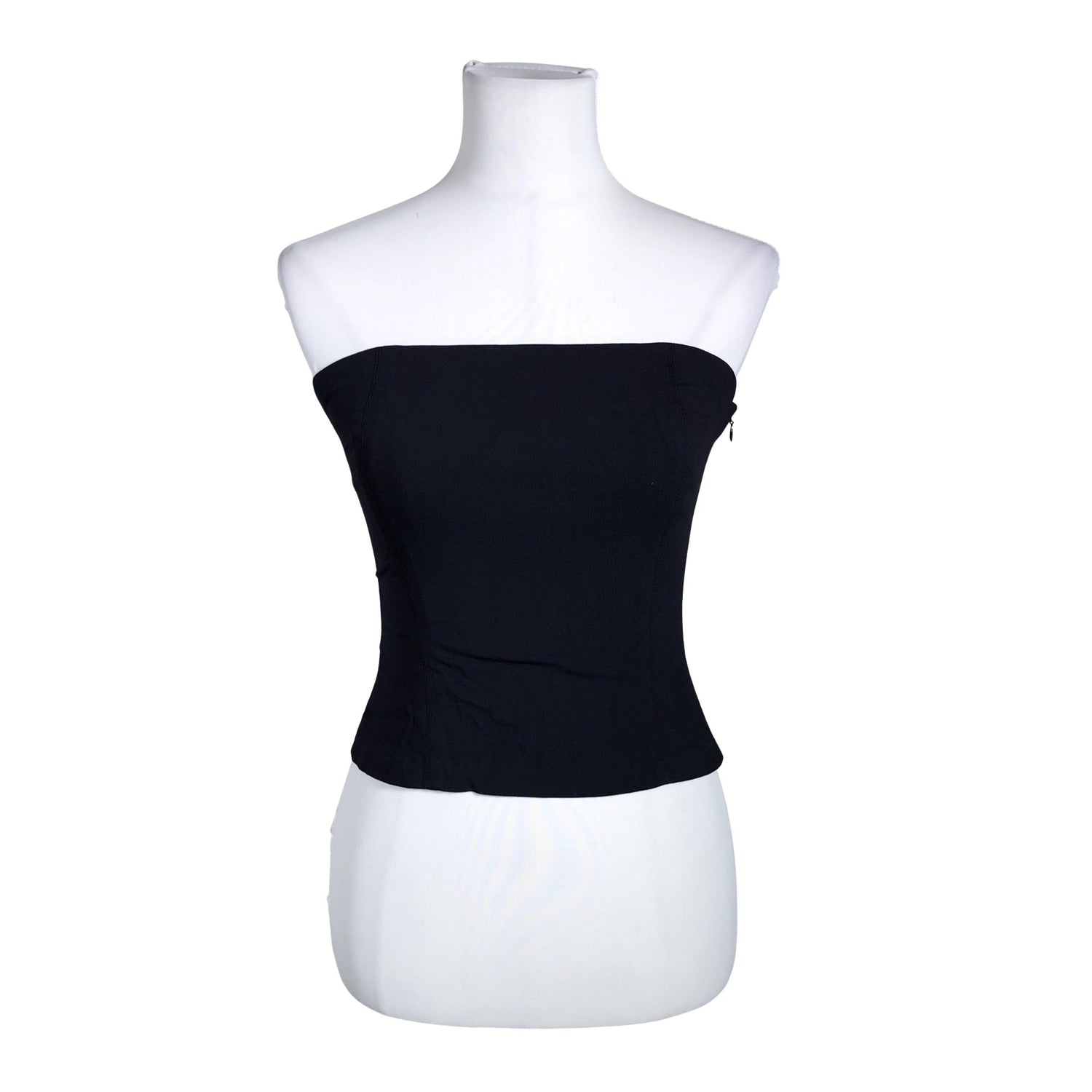 Olkaimeton malli. Sivusaumassa on vetoketju. Materiaali joustaa.