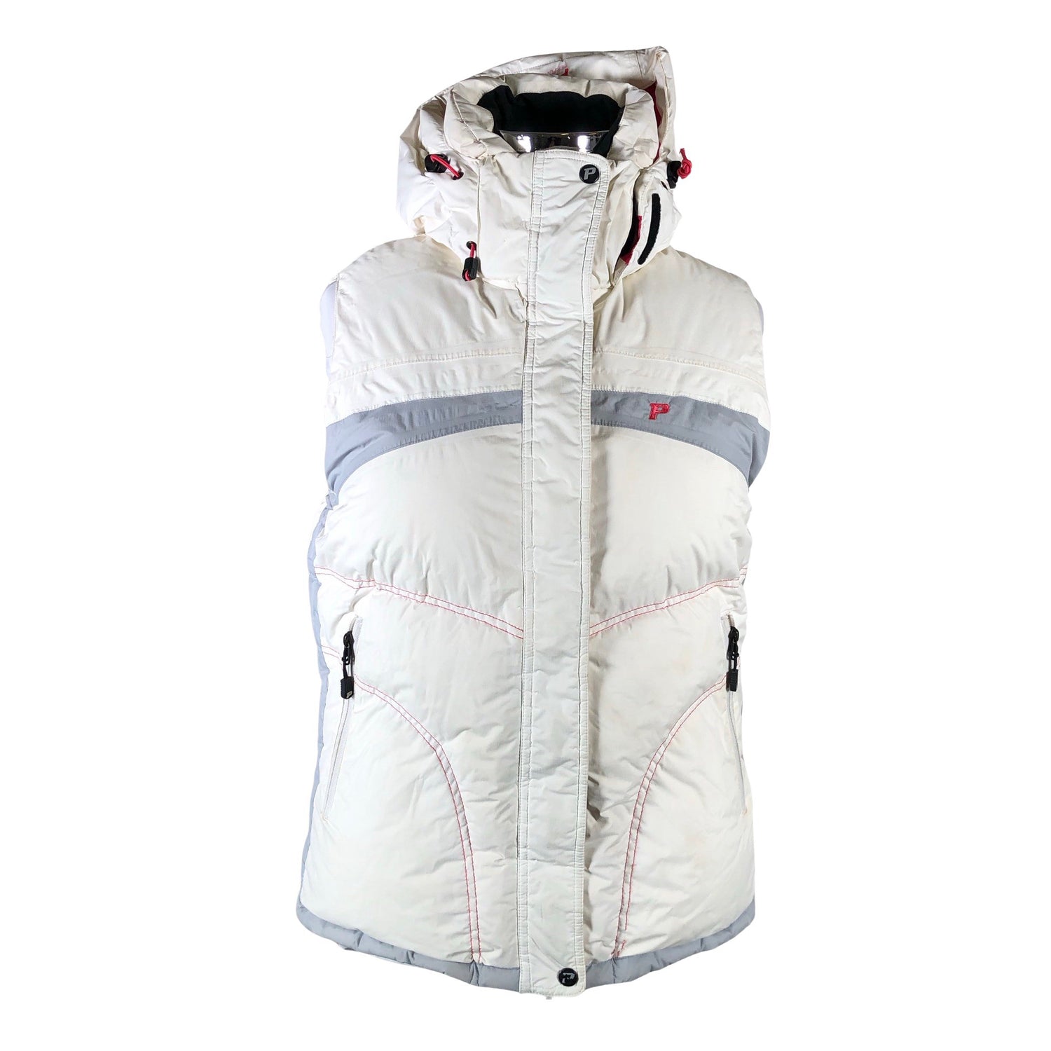 Untuvaa. Irrotettava huppu. Tuotteen taskuissa on vetoketjut. Tuotteen pinnassa on haalea tahra. Tuotteen pinnassa on hieman tummentumaa. Tuotteen pinnassa on hieman pesu-/käyttökulumaa. Somisteita irti. Yleisilme on siisti.