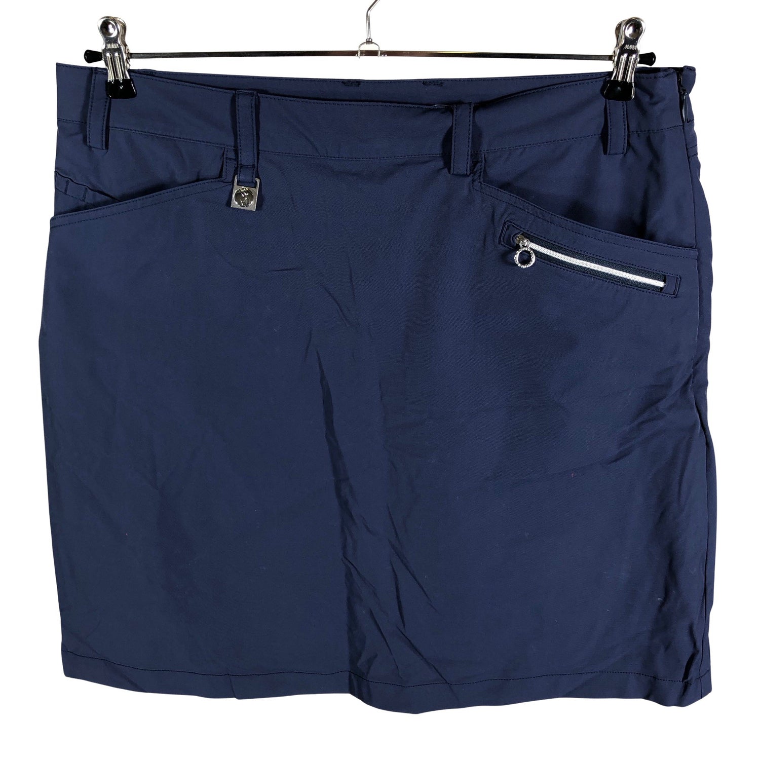 Golf. Hameessa on shortsit alla. Sivusaumassa on vetoketju. Tuotteen pinnassa on muutama haalea tahra. Tuote on muilta osin hyvässä kunnossa.