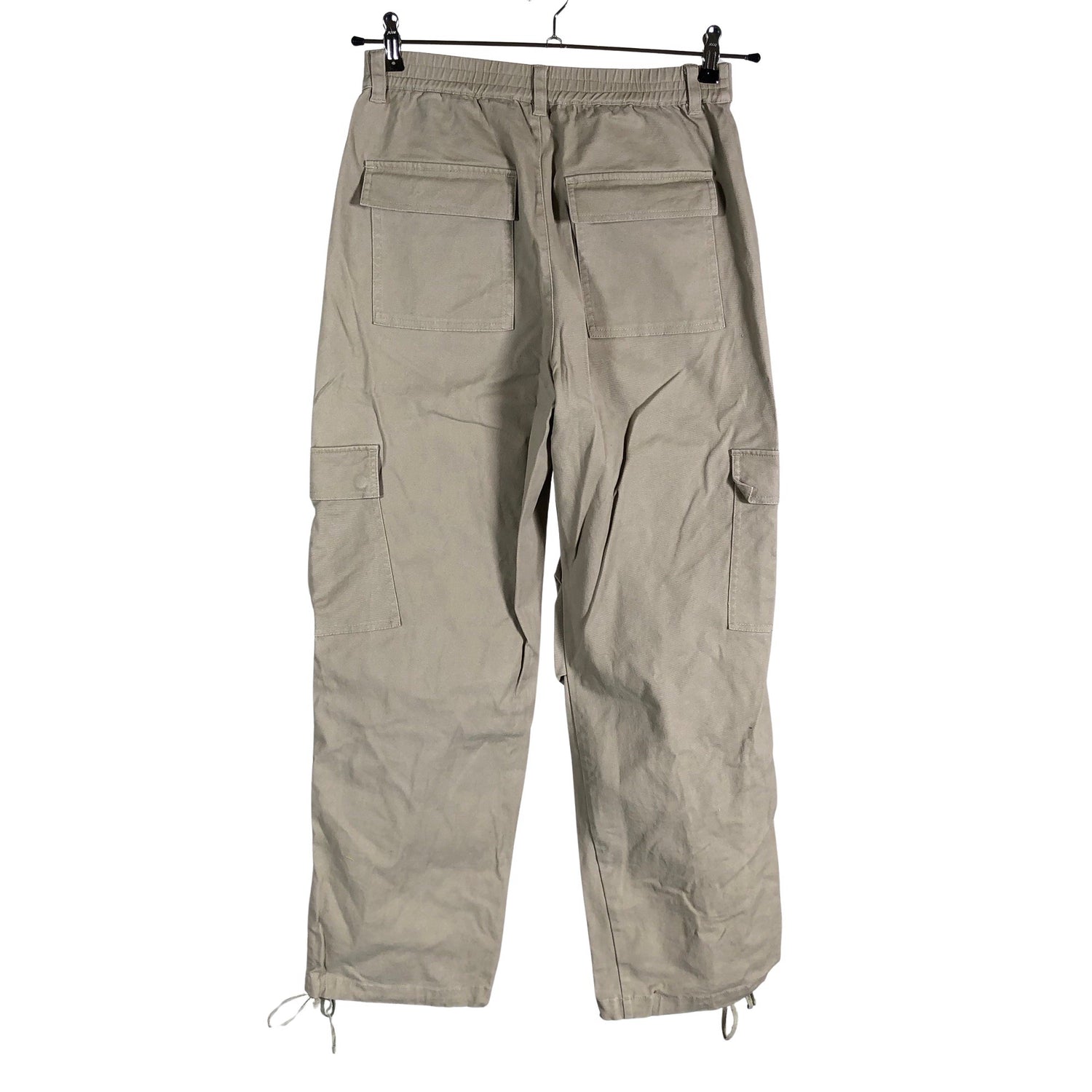 Vaatteessa on taskut. Materiaali joustaa hieman. Tuotteen pinnassa on hieman pesu-/käyttökulumaa. Yleisilme on siisti.