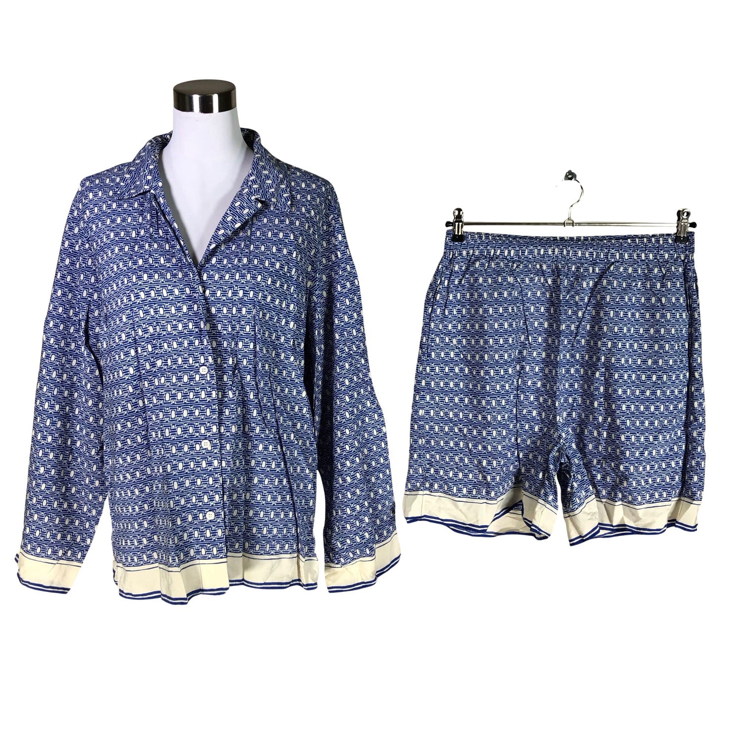Setti. Vyötärön 1/2 mitta: 40 cm. Haara-lahje pituus: 17 cm. Edessä napit. Vaatteessa on taskut. Materiaali ei jousta. Tuotteen pinnassa on aavistus pesu-/käyttökulumaa. Yleisilme on siisti.