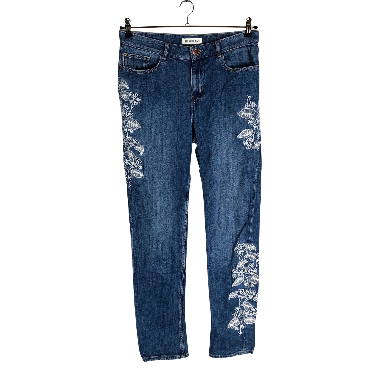 Malli: relaxed slim. Tuotteen pinnassa on hieman pesu-/käyttökulumaa. Yleisilme on siisti.