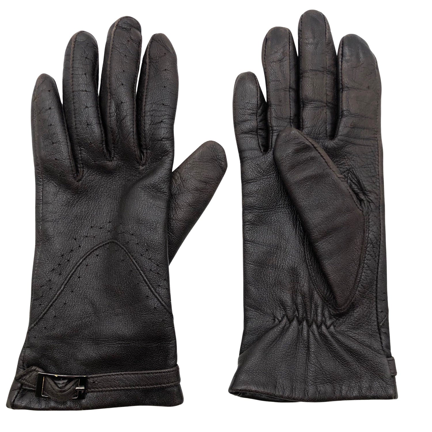 Pehmeää nahkaa. Tuotteessa on muutama nirhauma. Tuotteen pinnassa on hieman pesu-/käyttökulumaa. Yleisilme on siisti.
