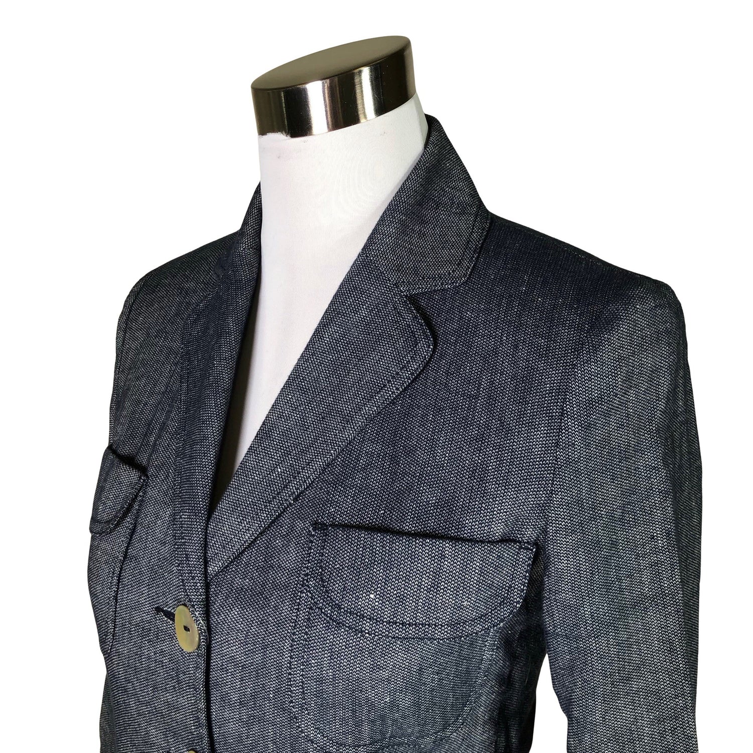 Pellavaa. Olkatoppaukset. Tuotteessa ei ole vuorta. Tuotteen pinnassa on aavistus pesu-/käyttökulumaa. Yleisilme on siisti.