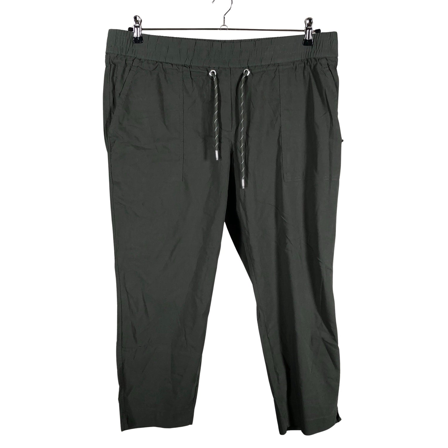 Joustava vyötärö. Väljä malli. Vajaamittaiset lahkeet. Kiristysnauha vyötäröllä.