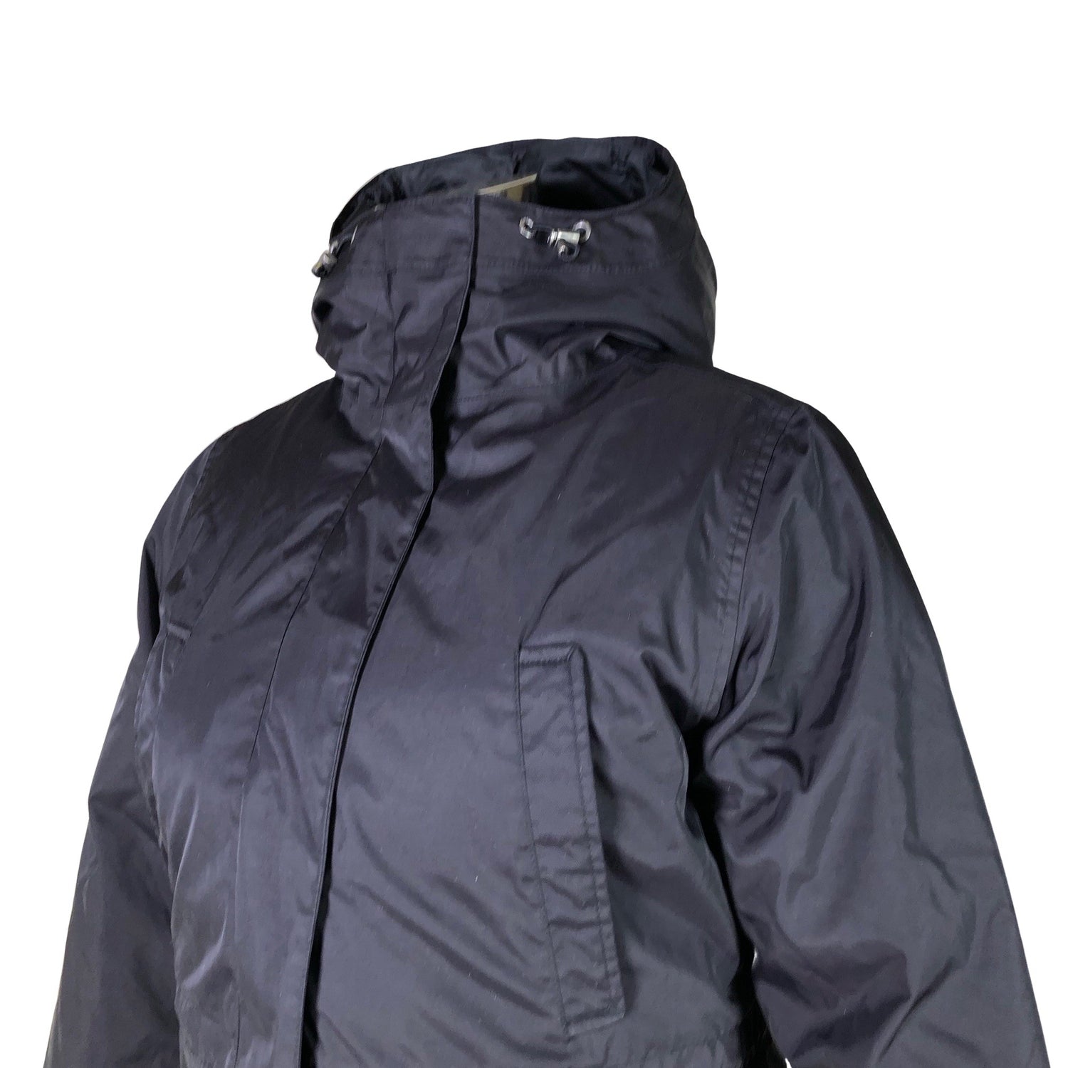 Materiaali ei jousta. Irrotettava huppu. Tuotteen pinnassa on aavistus pesu-/käyttökulumaa. Tuotteen pinnassa on aavistus käyttölikaa. Yleisilme on siisti.