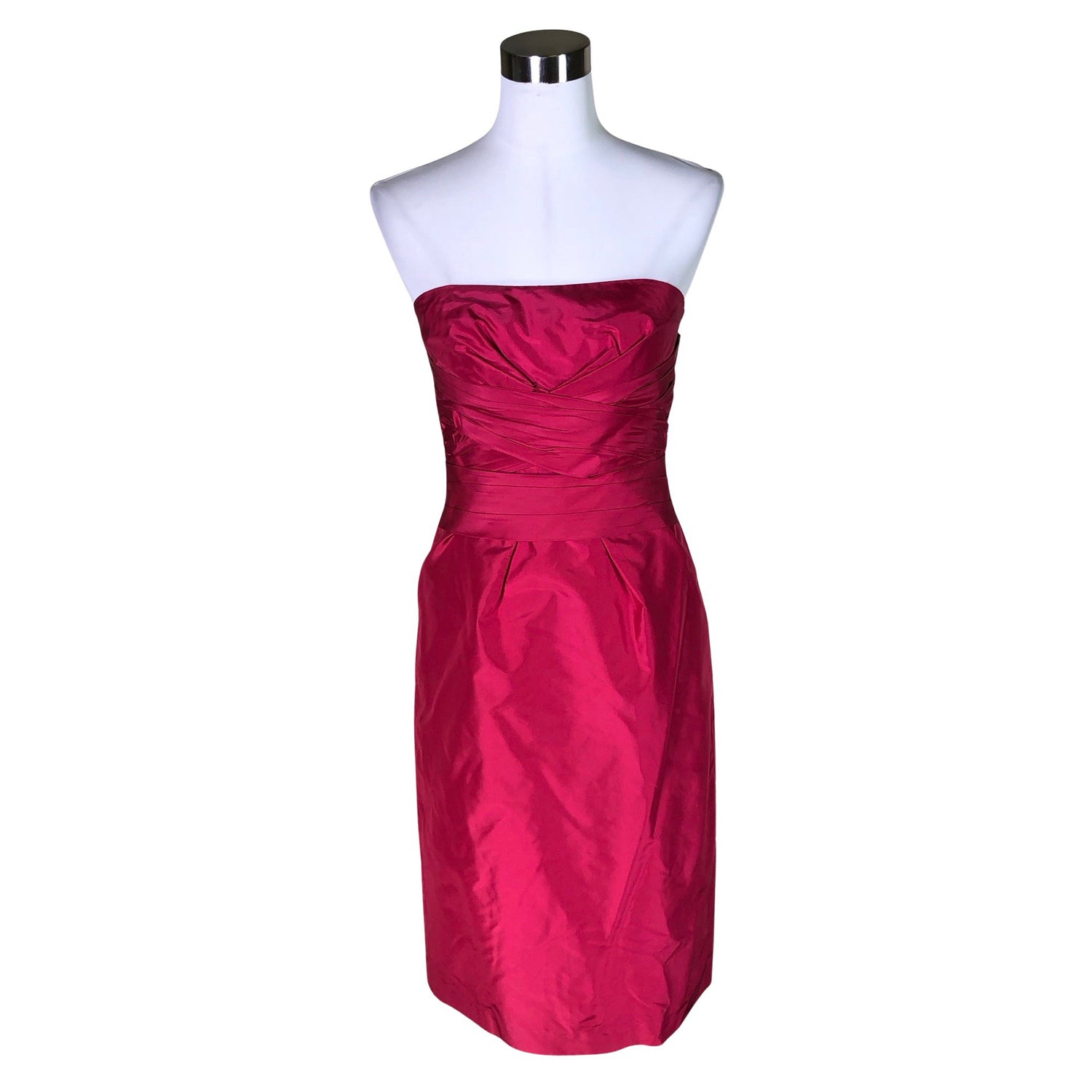 Olkaimeton malli. Vetoketju takana. Takasaumassa on halkio. Langassa on kiiltoa. Materiaali ei jousta. Tuotteen pinnassa on aavistus pesu-/käyttökulumaa. Yleisilme on siisti.
