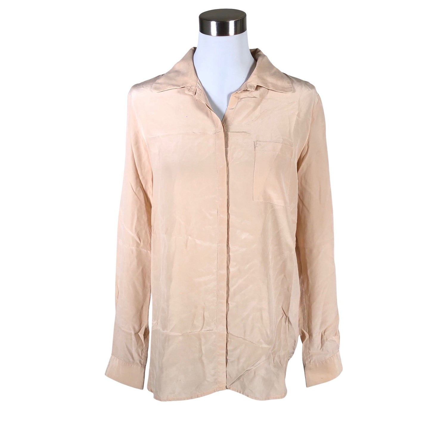 Silkkiä. Edessä napit. Ohutta materiaalia.
