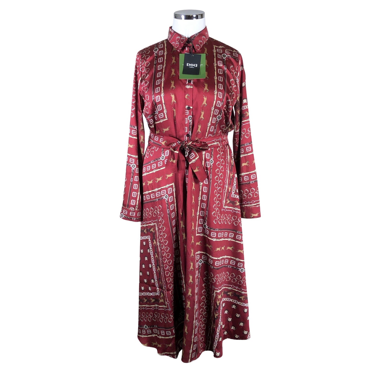 Edessä napit. Pitkä malli. Tuotteessa ei ole vuorta. Tuotteen pinta on kiiltävä. Satiinia. Malli: Abito robe dress.