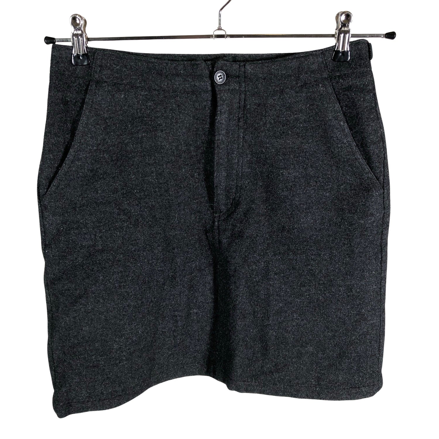 Villakangasta. Villasekoitetta. Vaatteessa on taskut. Materiaali ei jousta. Tuotteen pinnassa on hieman pesu-/käyttökulumaa. Yleisilme on siisti.