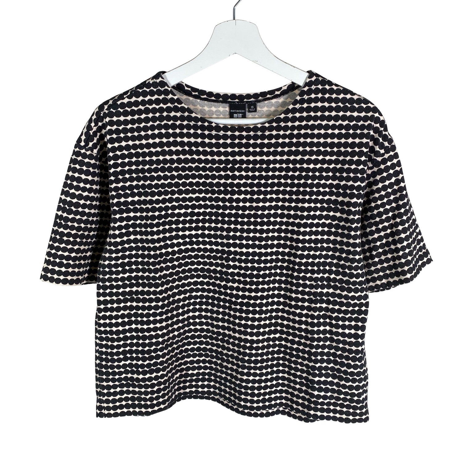 Mallisto: Uniqlo x Marimekko. Oversized. Materiaali joustaa hieman. Tuotteen pinnassa on pesu-/käyttökulumaa. Yleisilme on siisti.