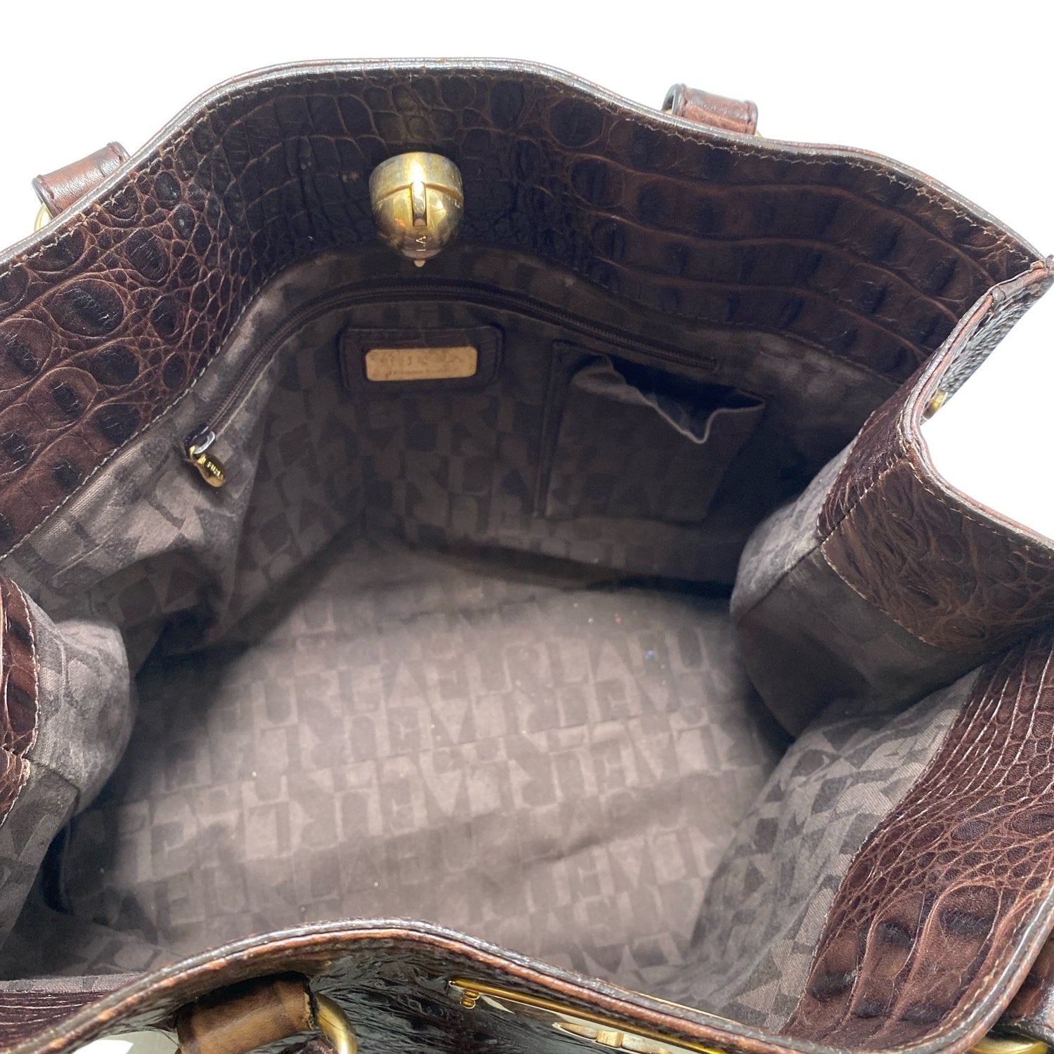 Nahkaa. Tuotteen sisäpuolella on aavistus käyttölikaa. Laukun hihnoissa/ kahvoissa on hieman kulumaa. Tuotteen metalliosassa on aavistus kulumaa. Yleisilme on siisti.