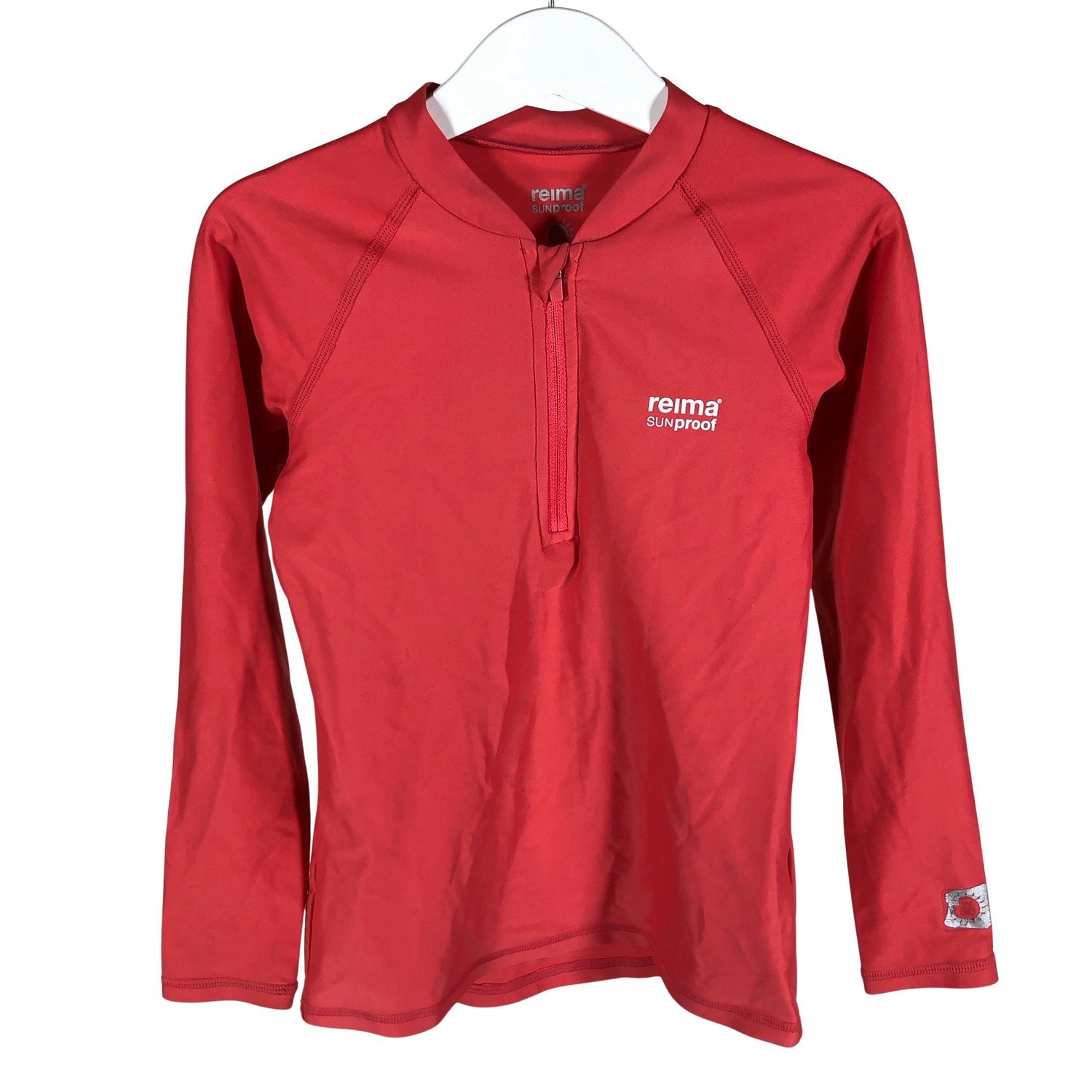 UV-suoja -merkintä. Tuotteen pinnassa on aavistus pesu-/käyttökulumaa. Yleisilme on siisti.