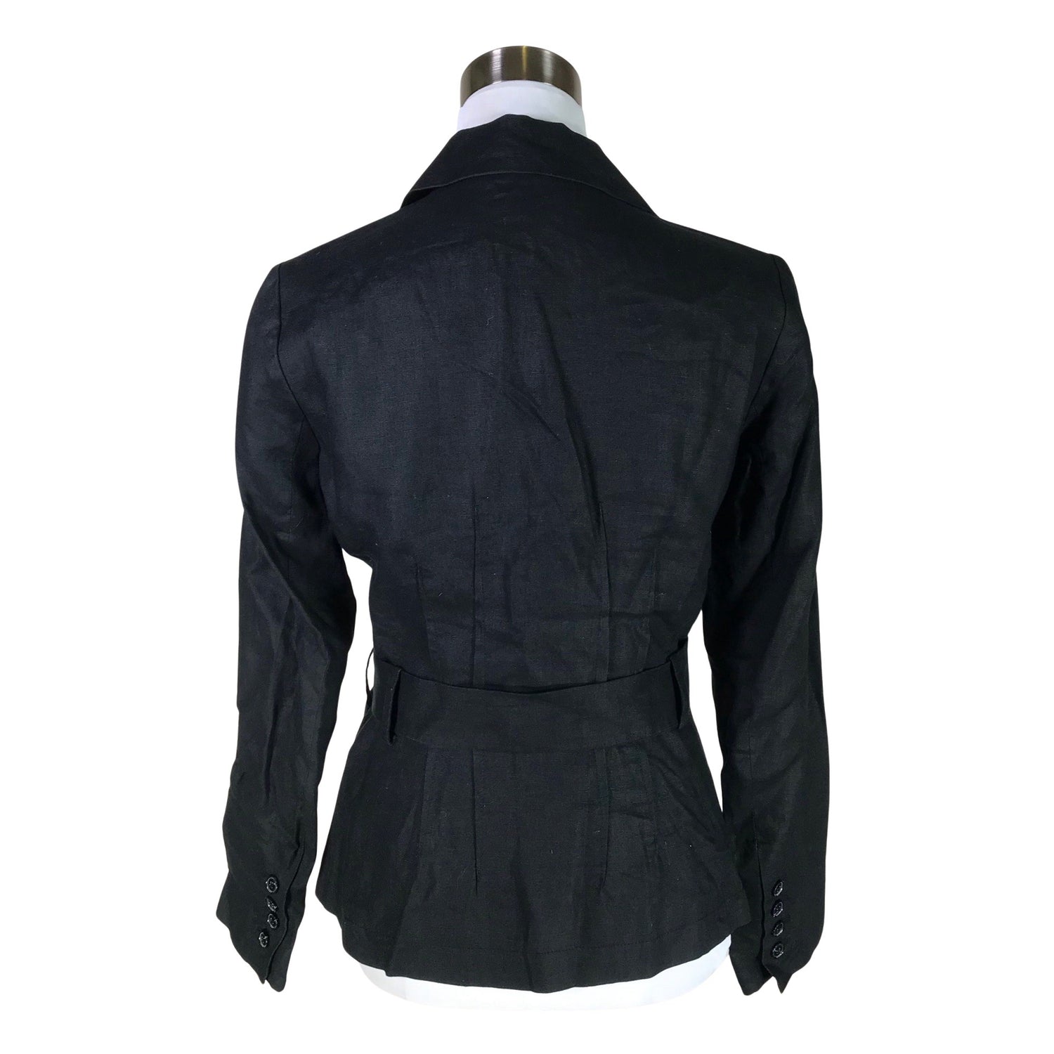 Takki/ jakku. Pellavaa. Tuotteessa on ohut vuori. Tuotteeseen kuuluu vyö.
