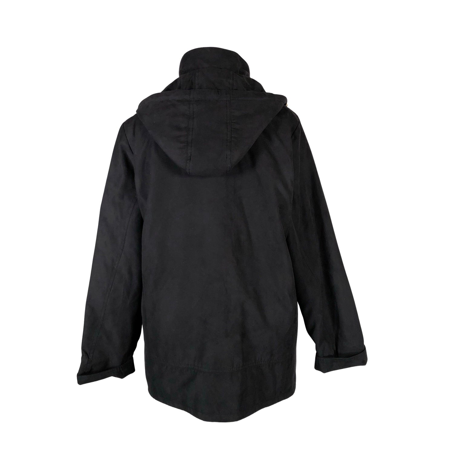Irrotettava huppu. Vaatteessa on taskut. Tuotteen pinnassa on hieman pesu-/käyttökulumaa. Yleisilme on siisti.