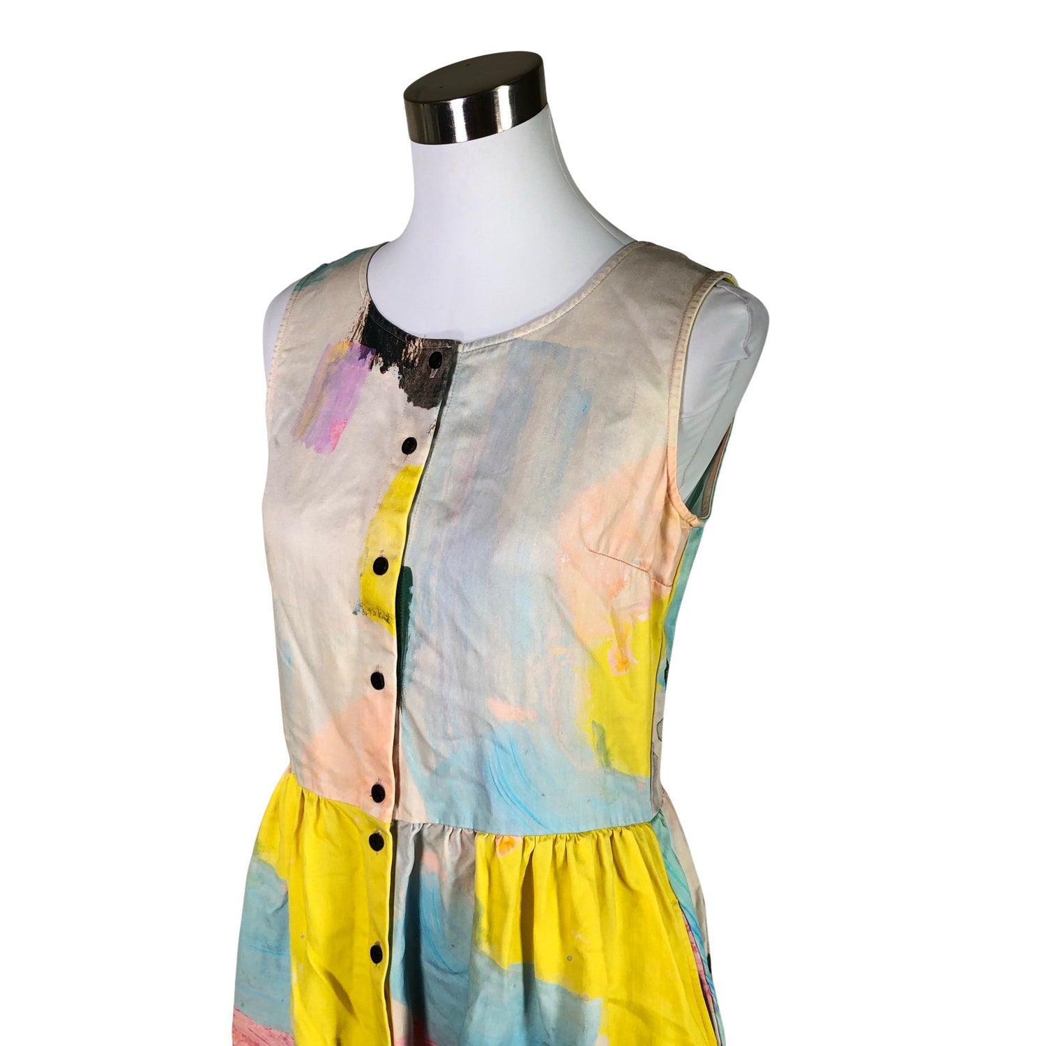 Vaatteessa on taskut. Materiaali ei jousta. Tuotteen pinnassa on aavistus pesu-/käyttökulumaa. Yleisilme on siisti.