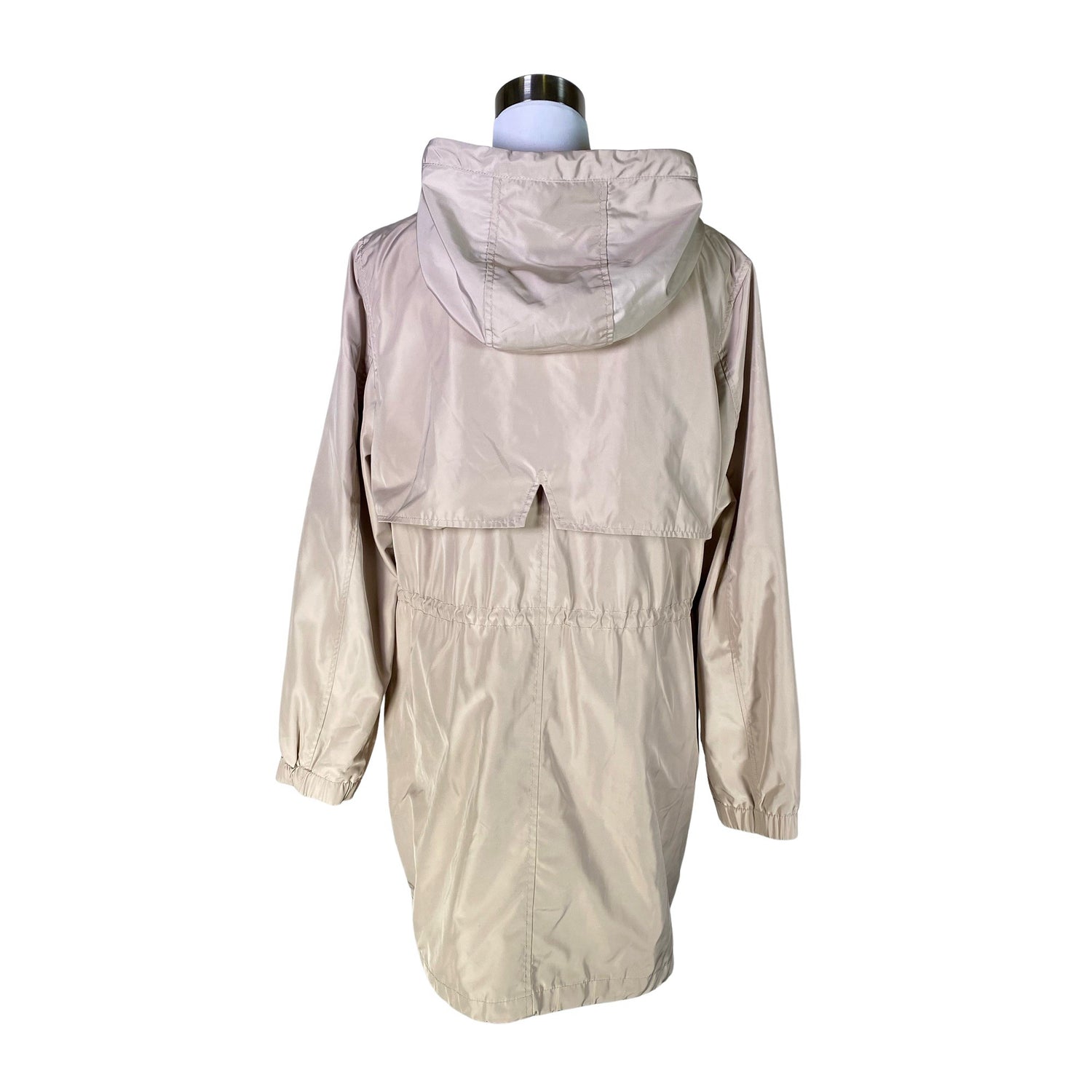 Kiristysnauha vyötäröllä. Tuotteessa on kiristysnyöri helmassa. Tuotteessa on huppu.