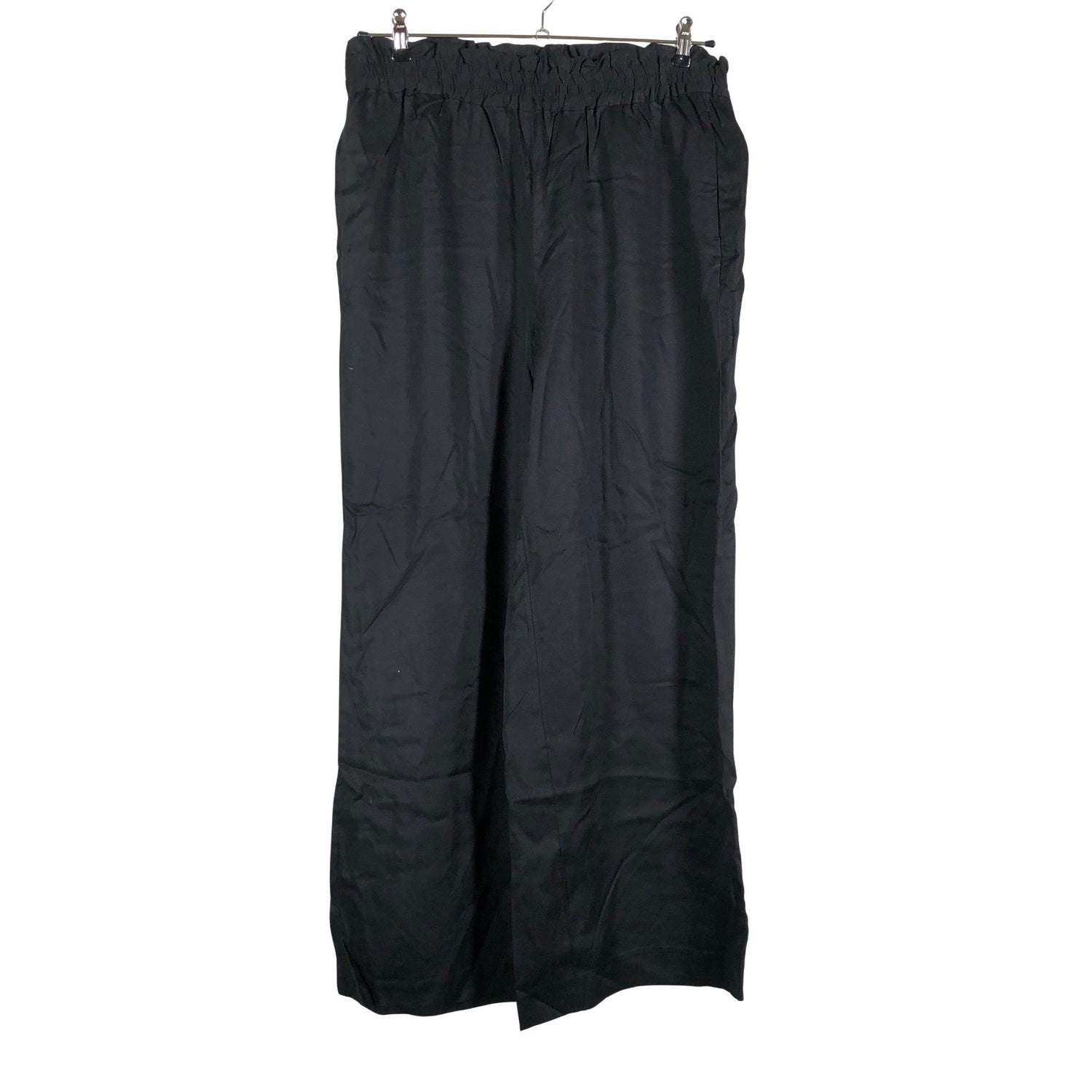Joustava vyötärö. Tuotteen pinta on kiiltävä. Materiaali ei jousta.