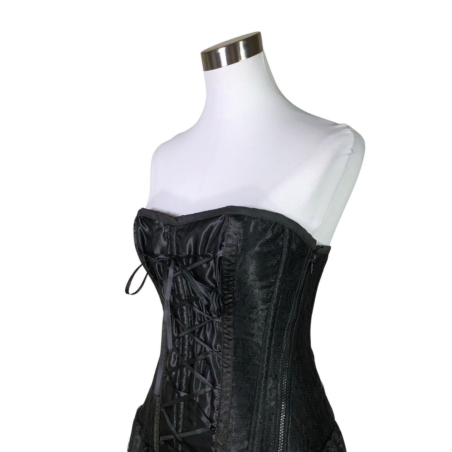 Malli: Mollflander dress. Säädettävä koko. Vaatteessa on tukiluut. Olkaimeton malli. Tuote on pitsiä.