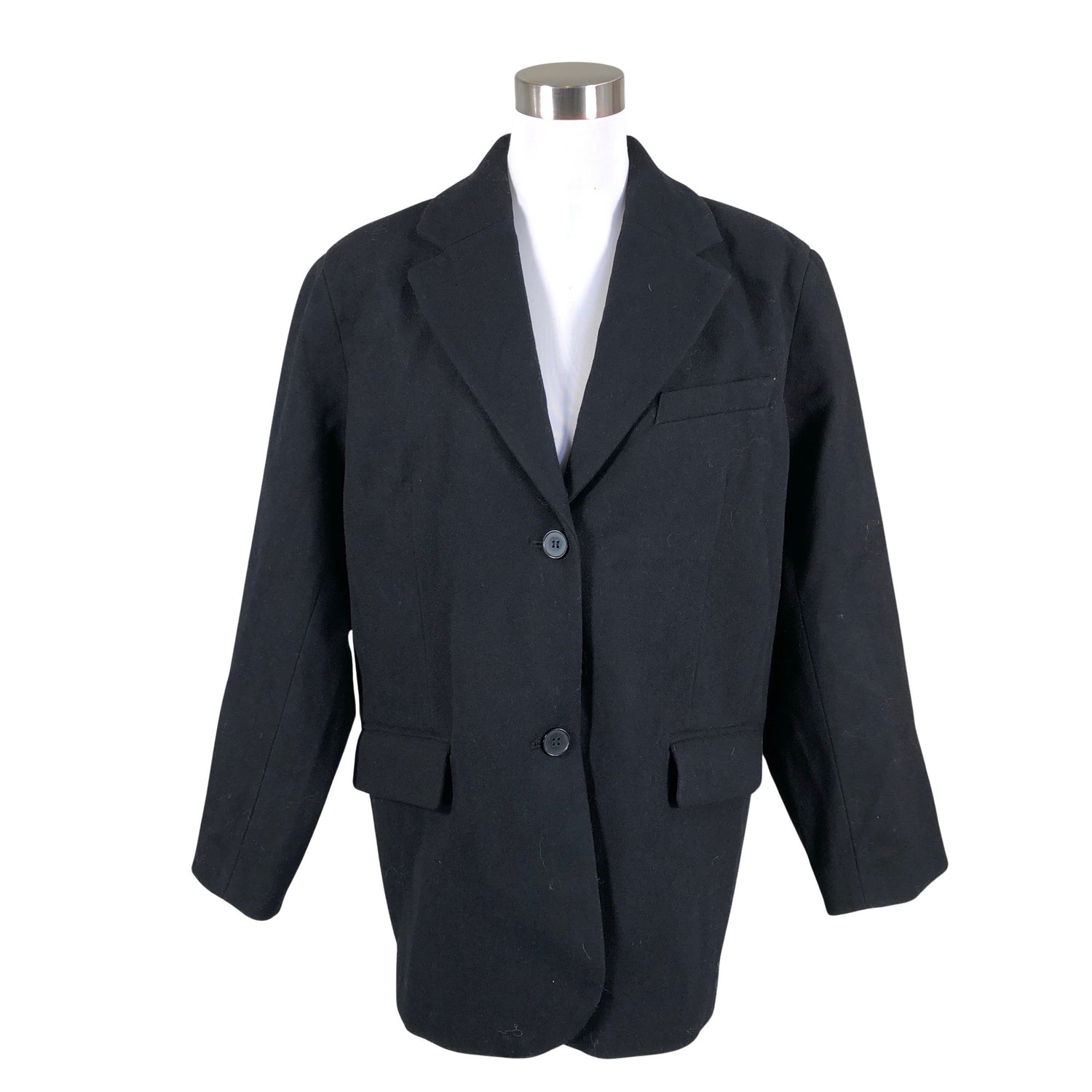 Villasekoitetta. Tuotteessa on ohut vuori. Vaatteessa on taskut. Tuotteen pinnassa on hieman pesu-/käyttökulumaa. Irtokarvoja pinnalla. Yleisilme on siisti.