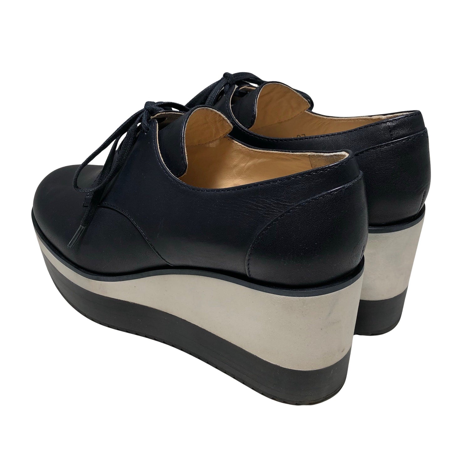 Materiaalitieto puuttuu. Todennäköisesti nahkaa. Kiilakorko. Mukana alkuperäinen pakkaus. Tuotteen pinnassa on aavistus pesu-/käyttökulumaa. Yleisilme on siisti.