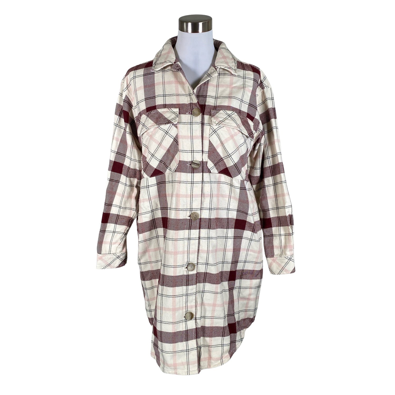 Oversized. Edessä napit. Tuotteessa ei ole vuorta. Tuotteen pinnassa on hieman nukkaa. Tuotteen pinnassa on langannousu/langankiristymä. Yleisilme on siisti.