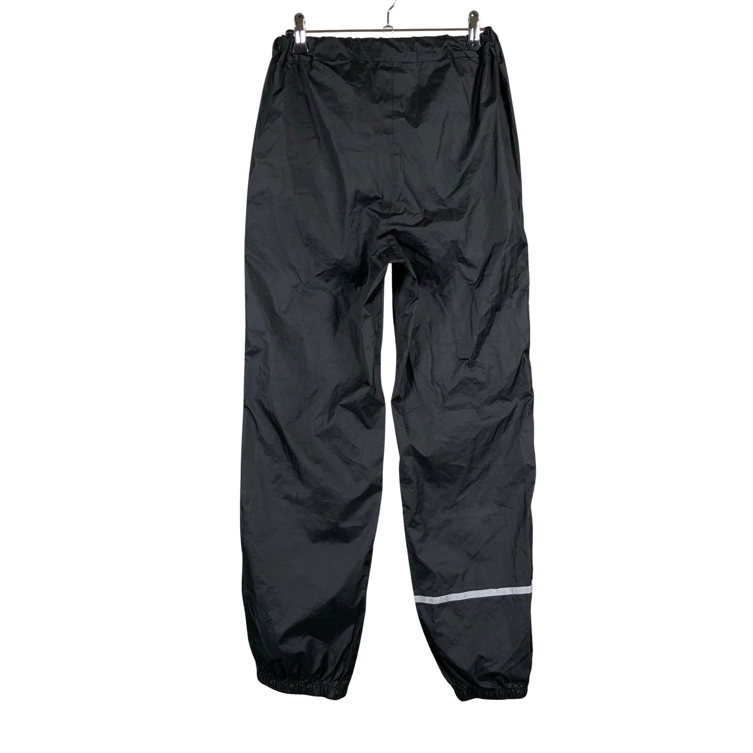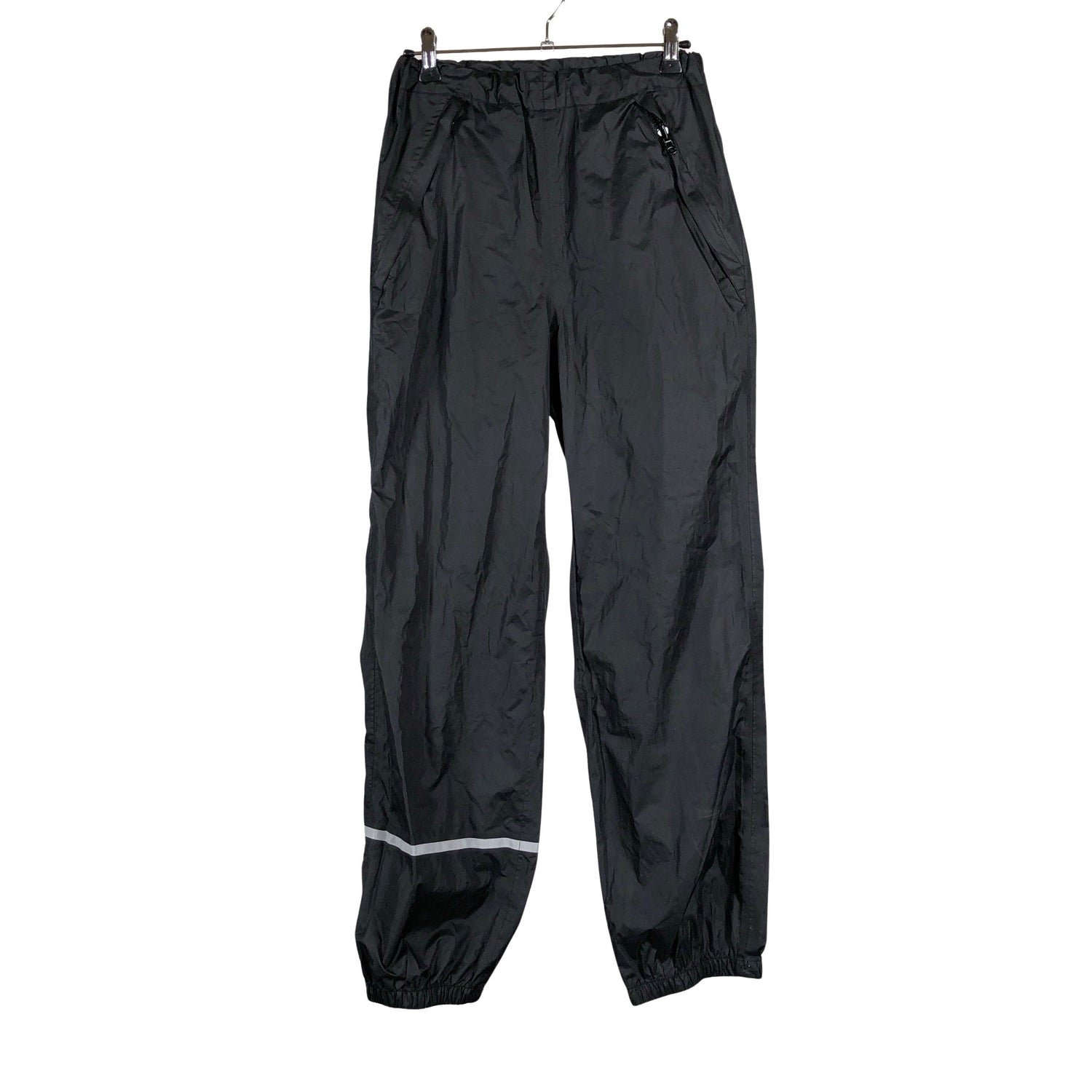 Ohutta materiaalia. Teipatut saumat. Tuotteen taskuissa on vetoketjut. Säädettävä kuminauha vyötäröllä. Tuotteen pinnassa on aavistus pesu-/käyttökulumaa. Tuotteen pinnassa on hieman tummentumaa. Yleisilme on siisti.