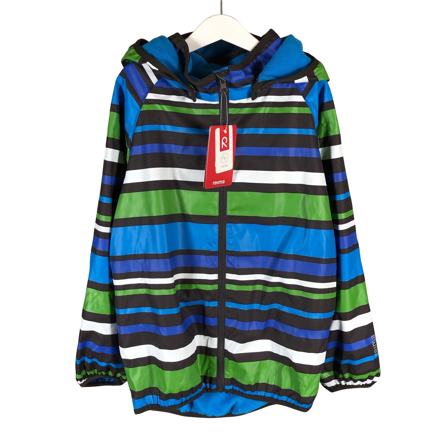 Irrotettava huppu. Kääntöpuoli fleeceä. Tuotteessa on heijastavia yksityiskohtia. Sh# 49.95 €.
