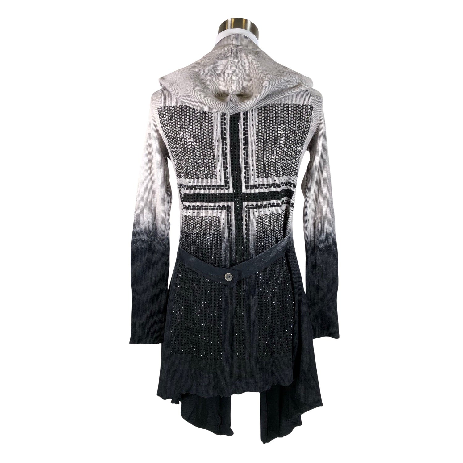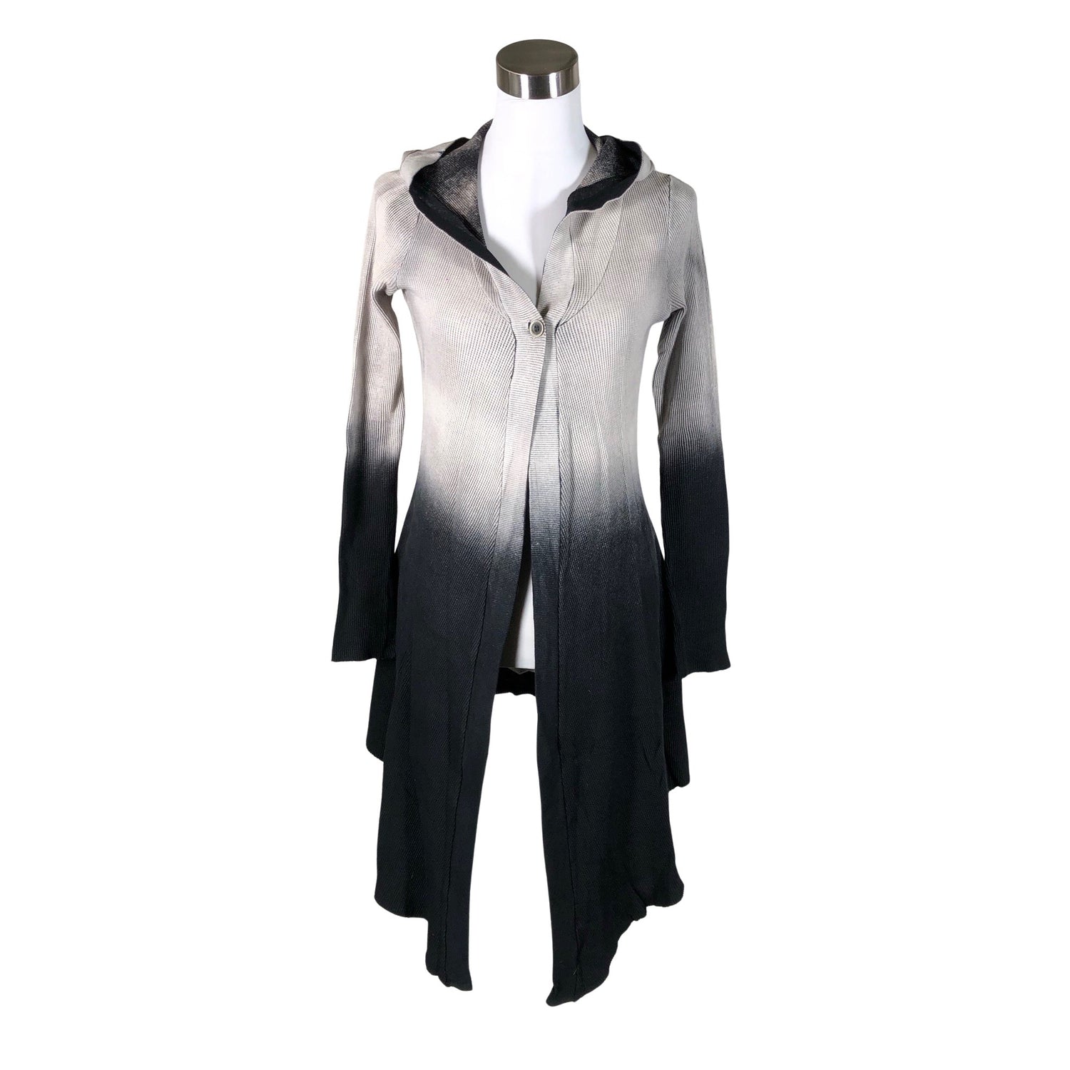 Trikoota. Tuotteessa on huppu. Tuotteessa on viimeistelemättömät reunat. Kulutettu kuosi.
