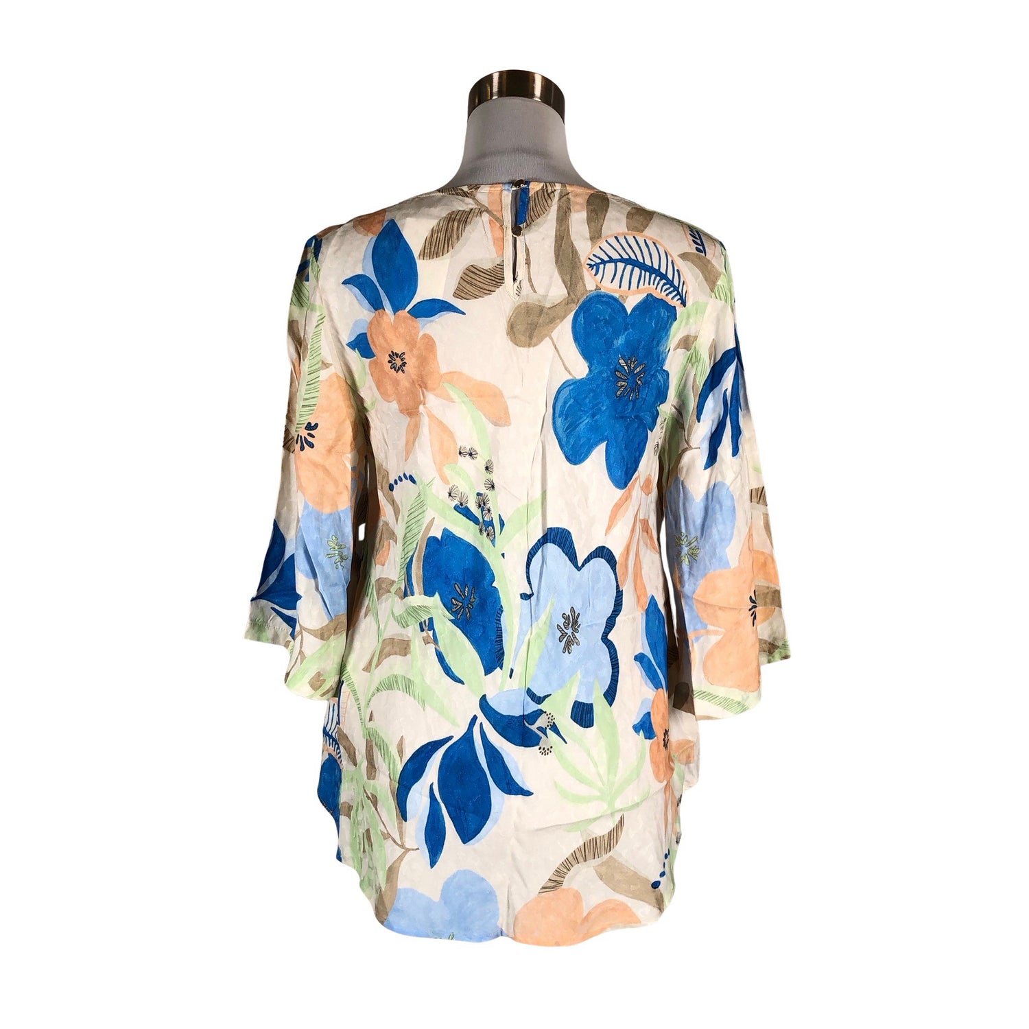 Leveät hihat. Langassa on kiiltoa. Laskeutuvaa materiaalia. Materiaali ei jousta. Tuotteen pinnassa on aavistus pesu-/käyttökulumaa. Yleisilme on siisti.