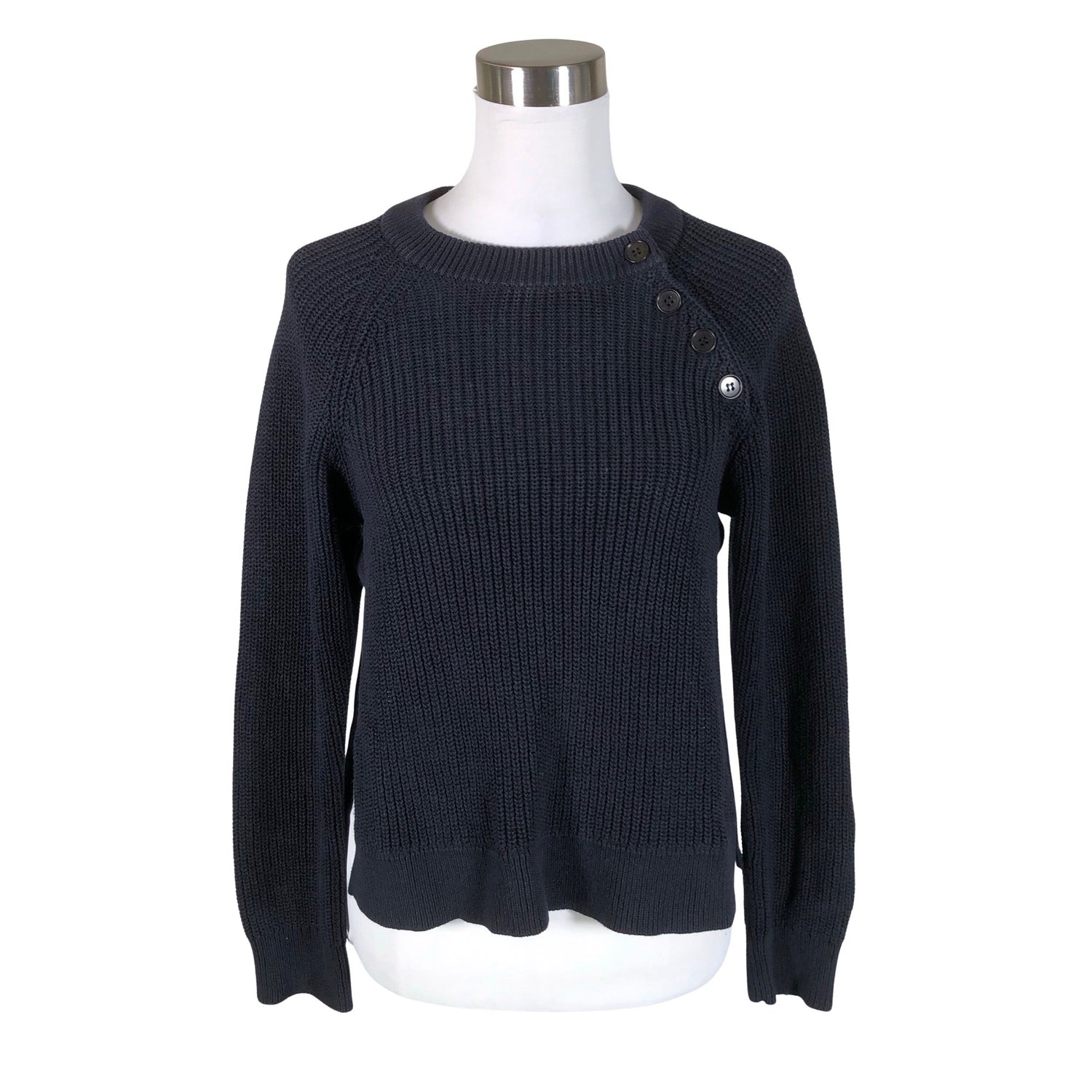 Paksua neulosta. Sivusaumoissa on halkiot. Kauluksessa on hieman kulumaa. Tuote on muilta osin hyvässä kunnossa.