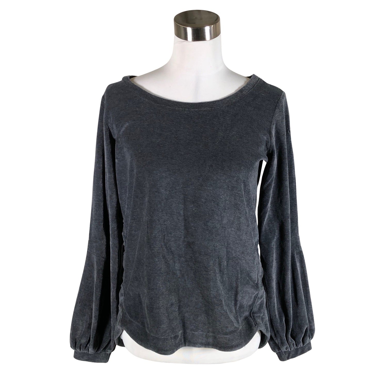 Velouria. Takaa pidempi malli. Väri: siniharmaa. Tuotteen pinnassa on hieman pesu-/käyttökulumaa. Yleisilme on siisti.