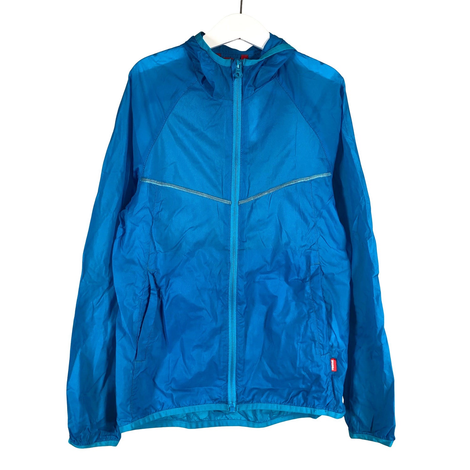 Ohutta materiaalia. Tuotteessa ei ole vuorta. Tuotteessa on huppu. Hihan- ja/tai lahkeensuissa on hieman tummentumaa. Tuote on muilta osin hyvässä kunnossa.