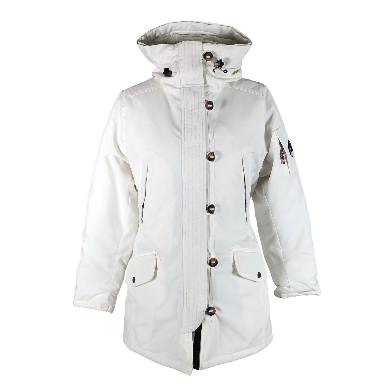 Malli: Groa. Paksua materiaalia. Irrotettava karvakaulus puuttuu. Tuote on muilta osin hyvässä kunnossa.