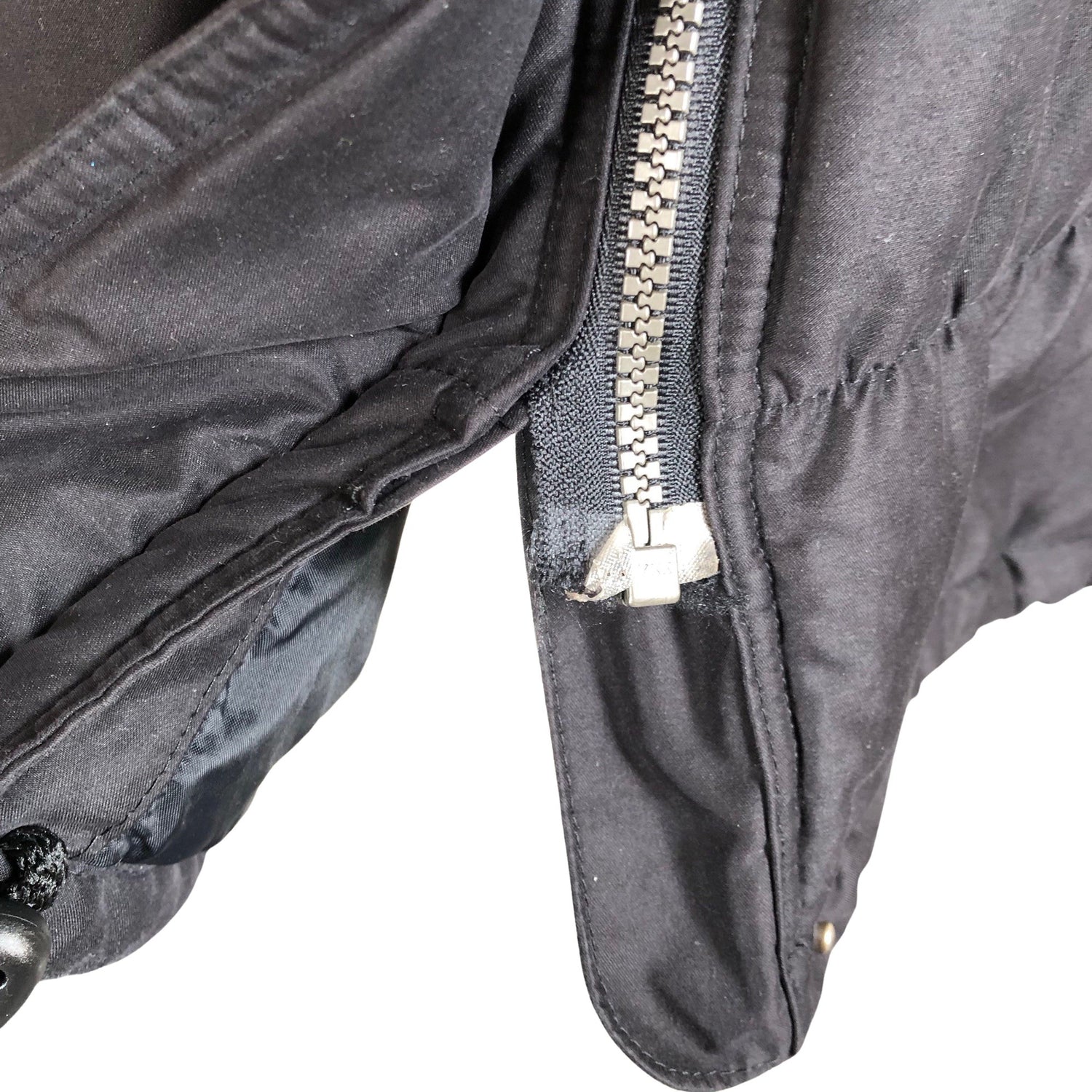 Tuotteessa on huppu. Tuotteen sauma on hieman auennut, ei vaikuta käyttöön. Katso lisäkuvat.