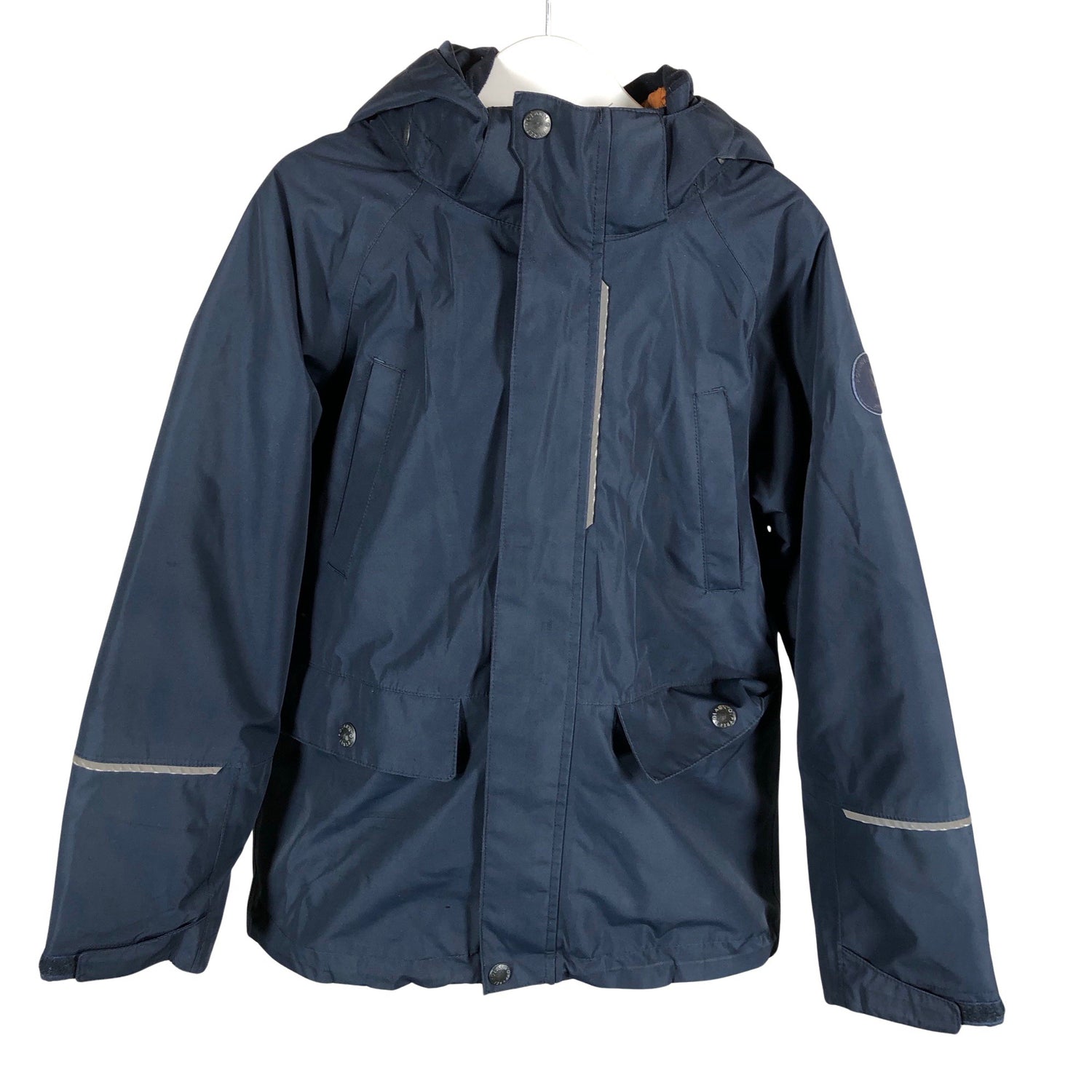 3in1 takki (irrotettava sisätakki). Irrotettava huppu. Materiaali ei jousta. Tuotteen pinnassa on aavistus pesu-/käyttökulumaa. Tuotteen pinnassa on aavistus käyttölikaa. Yleisilme on siisti.
