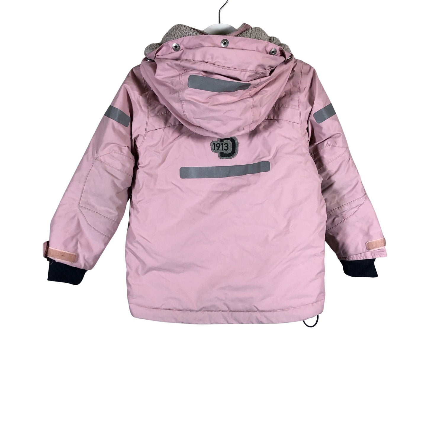 Irrotettava huppu. Tuotteen pinnassa on hieman pesu-/käyttökulumaa. Irrotettava karvakaulus puuttuu. Yleisilme on siisti.