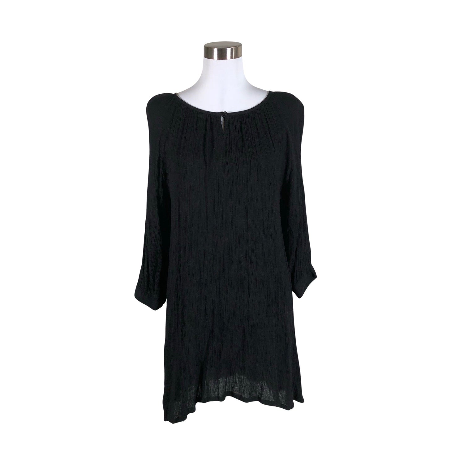 Viskoosia. Läpikuultava kangas. Vajaamittaiset hihat.